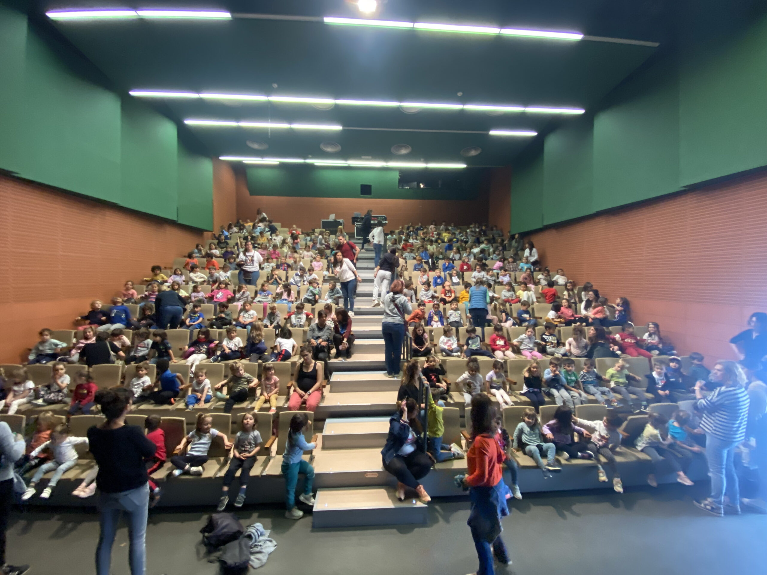 Ahir l’alumnat de la comunitat de Petits i 1r i 2n de Primària vam anar de concert a l’Ateneu. Actuaven El Pot Petit i en van explicar Les Aventures del Lleó Vergonyós, un lleó que va coneixent d’altres animals amb certs problemes que mica en mica es van solucionant. Vam cantar moltes cançons amb l’acompanyament d’uns actors i músics sensacionals.