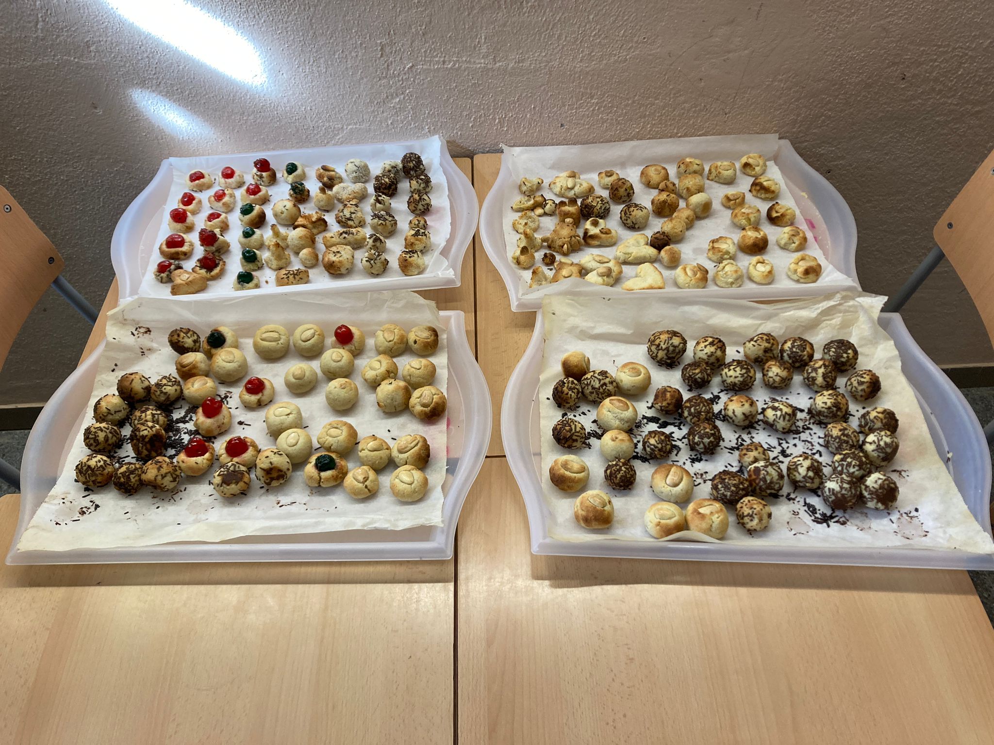De bon matí hem preparat panellets tradicionals, amb xocolata, amb coco… ja estan cuits i fan molt bona olor!
