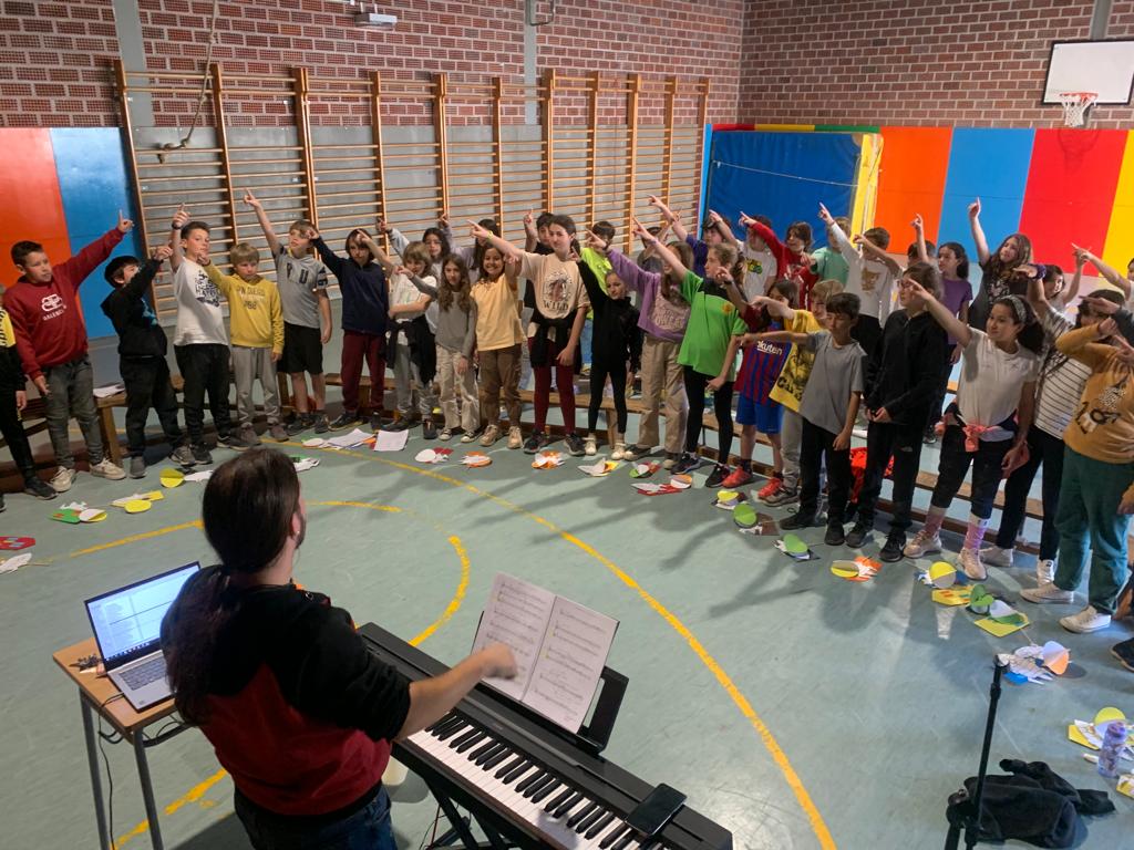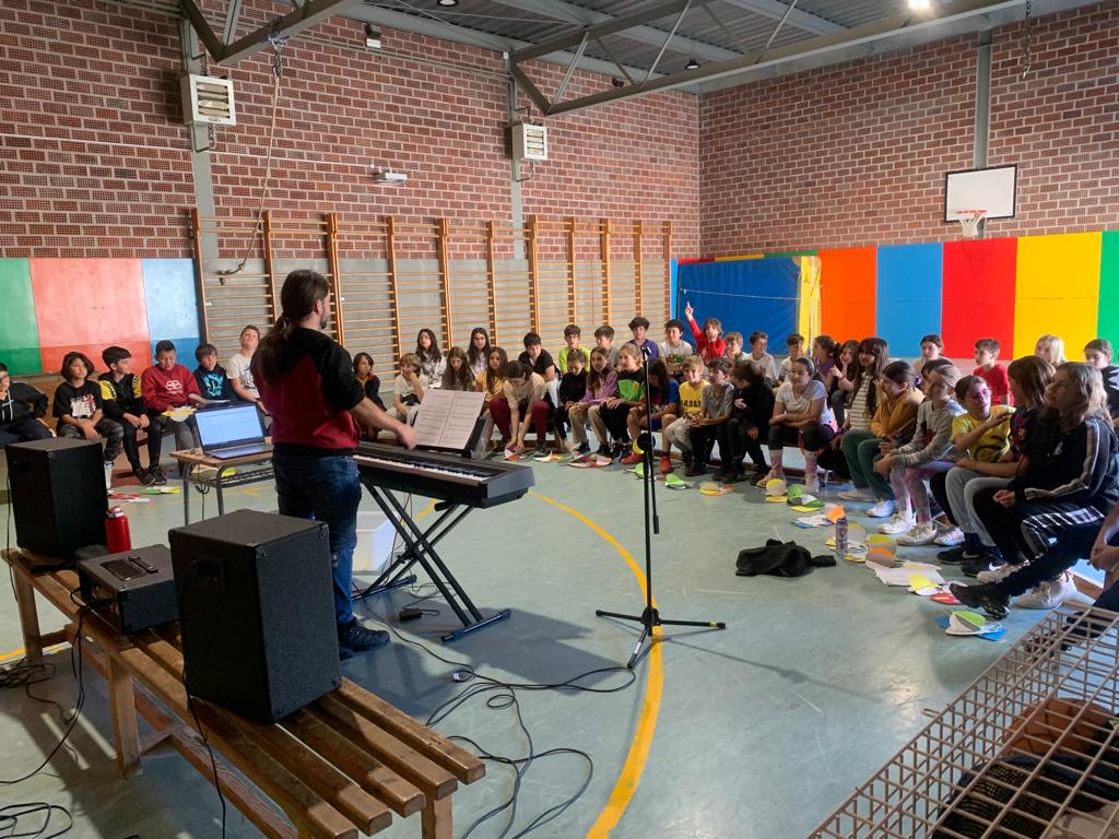 Aquesta tarda, les nenes i els nens de 5è de primària hem fet el darrer assaig dirigit pel nostre mestre de música l’Aleix acompanyades de les nostres tutores!
