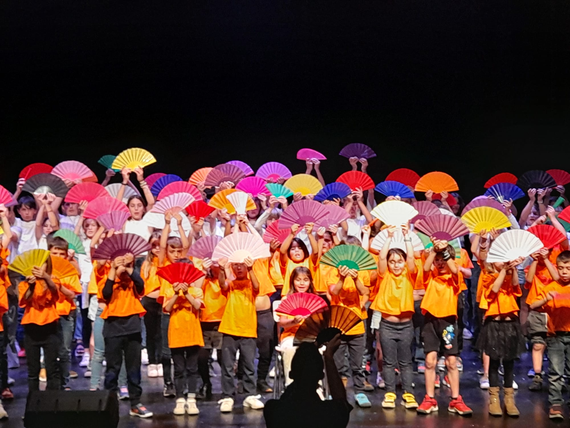 El divendres 17 de maig, més de 120 nenes i nens de 1r i 6è de primària de l’Institut Escola de Torrelles vam oferir un concert espectacular a l’Ateneu Torrellenc. Les cançons Mirall de Pau i Feliçoroniak van ressonar amb força gràcies a la participació conjunta dels alumnes dels dos cursos.
