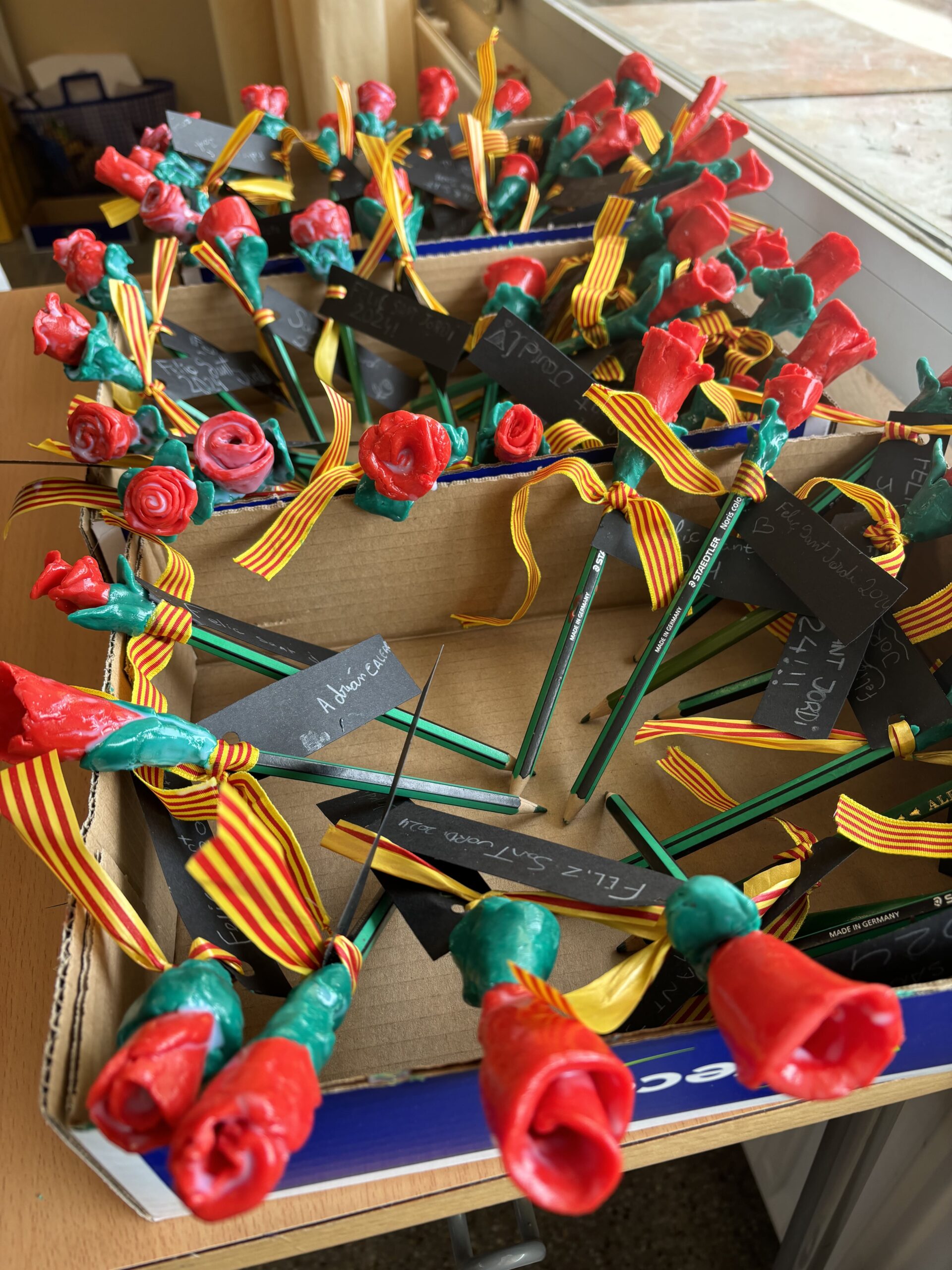 La comunitat de grans de l’edifici groc ha celebrat la Diada de Sant Jordi amb una jornada plena d’activitats. Els tallers van incloure manualitats inspirades en la llegenda de Sant Jordi, poesia i cal·ligrames, jocs de moviment a la recerca de llibres perduts i reptes matemàtics. Teniu més fotografies a la carpeta del Drive.