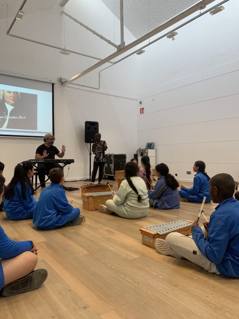 A través d’una experiència interactiva, van aprendre i interpretar una cançó tradicional brasilera, van experimentar amb instruments com xilòfons, metal·lòfons i carillons per tocar una peça del cèlebre Johann Sebastian Bach, i fins i tot es van deixar portar pel ritme del swing amb una sessió de ball.