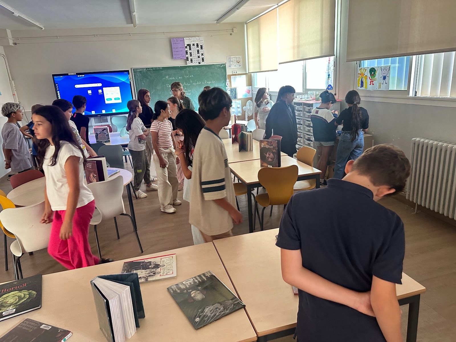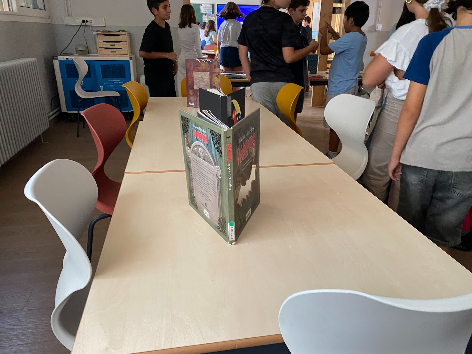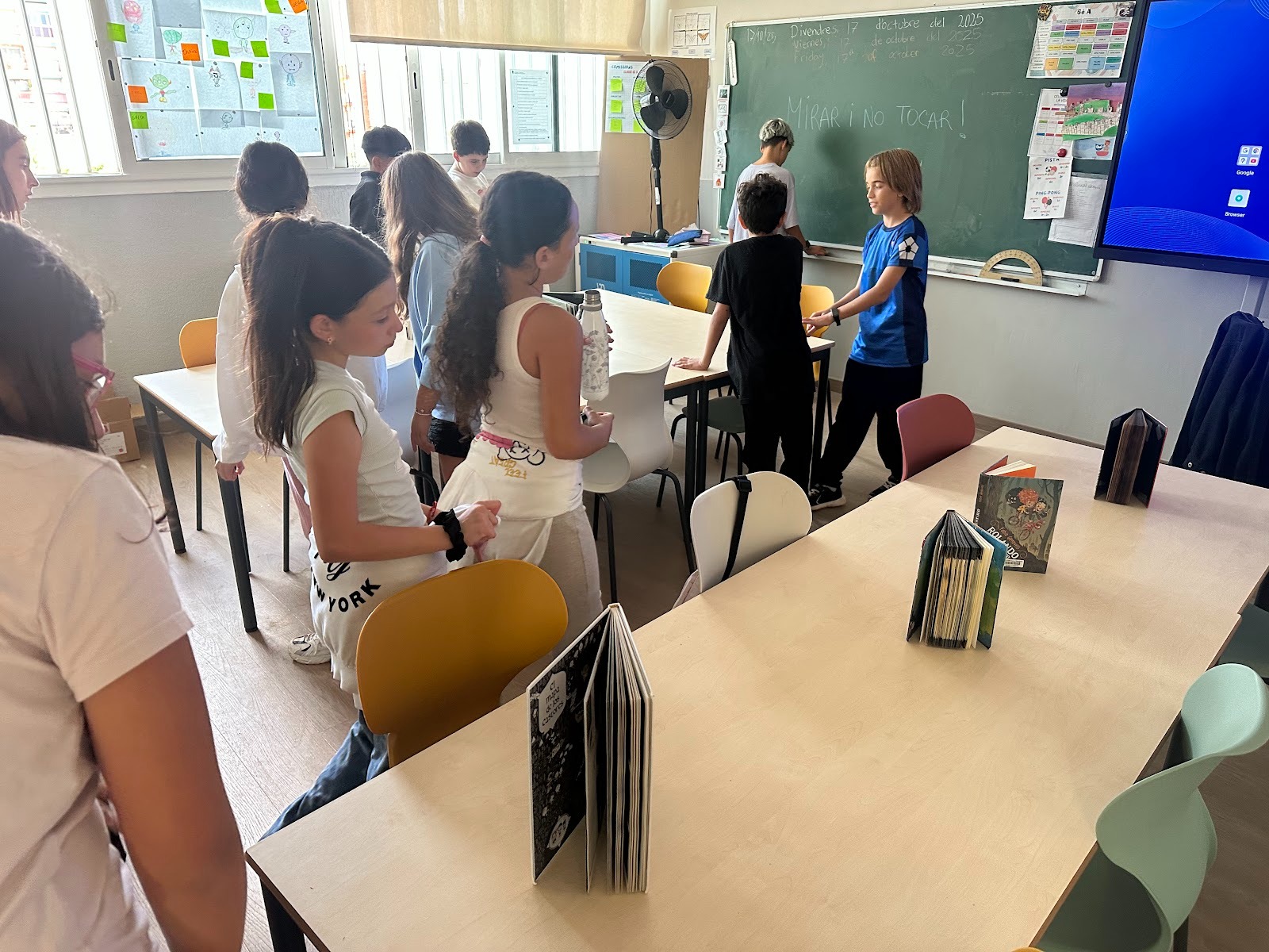 Les taules de les classes eren plenes de llibres, però d’entrada no els podíem llegir, durant uns minuts només vam poder observar, sense parlar ni tocar.