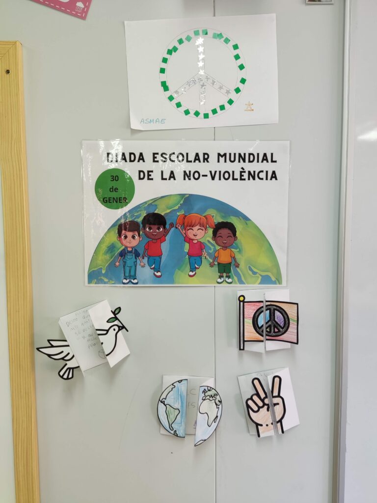 El dia 30 de Juny és el Dia de la Pau i la Diada Escolar Mundial de la NO-VIOLÈNCIA i des del SIEI de primària no hem volgut passar-ho per alt. Hem volgut deixar constància, a un raconet de la nostra aula, d’aquest dia. Els petits han escollit les paraules que per ells signifiquen PAU,