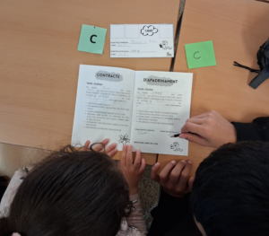 Observant les targetes i parlant entre ells, han hagut de buscar la seva parella corresponent fins a trobar el seu padrí o fillol. Ha estat una manera molt engrescadora de començar a conèixer-se i iniciar el vincle d’apadrinament lector.