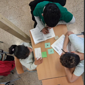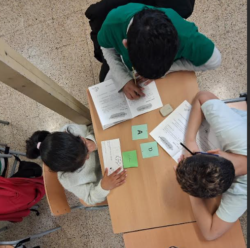 Per trobar la seva parella d’apadrinament, els alumnes han participat en una petita dinàmica molt divertida. Cada padrí o padrina portava una targeta amb una lletra lligada, mentre que els fillols i filloles tenien la mateixa lletra però en lletra de pal.