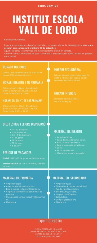 Us deixem aquí el document amb el calendari i les instruccions més importants per a l’inici de curs.