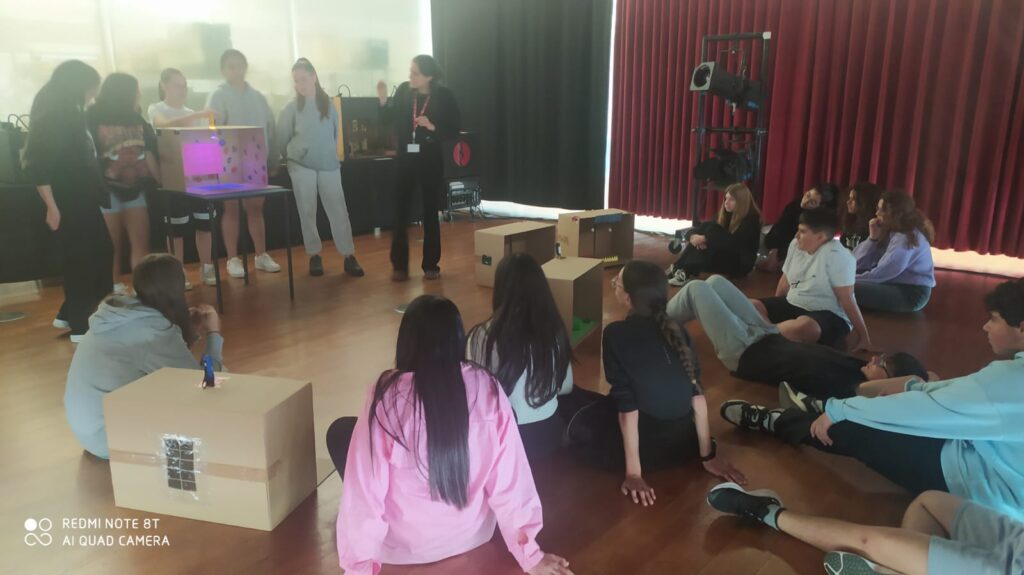 Després, l’alumnat va realitzar un taller de llums: van crear un escenari i el van il·luminar per aconseguir l’efecte visual desitjat.