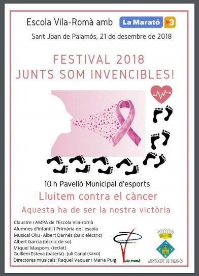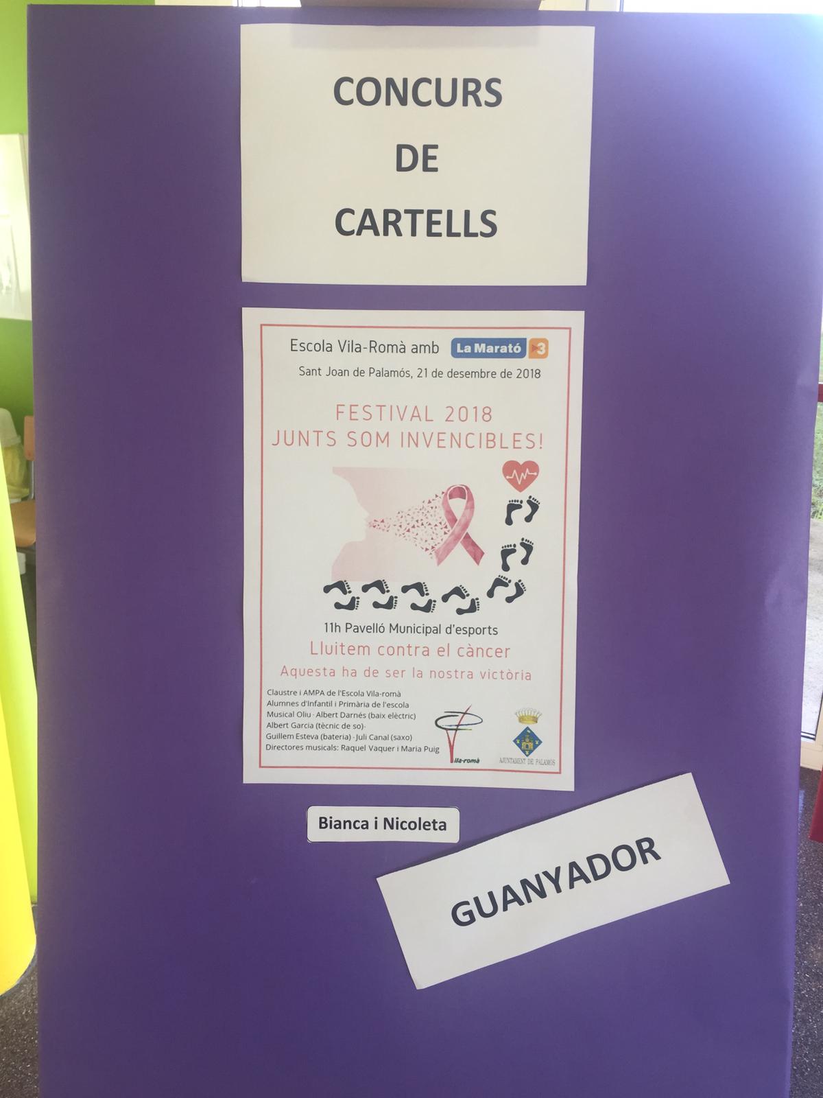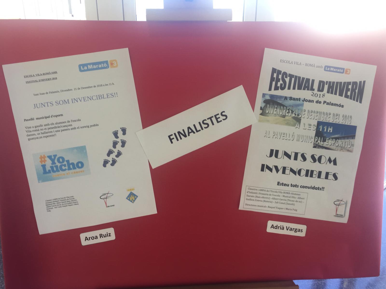 Aquest any els alumnes de cicle superior, de manera voluntària, han participat en el concurs de cartells del Festival d’hivern. Com cada any, l’Escola Vila-romà s’uneix a la iniciativa promoguda per la Marató de TV3 que enguay és per la investigació contra el càncer.