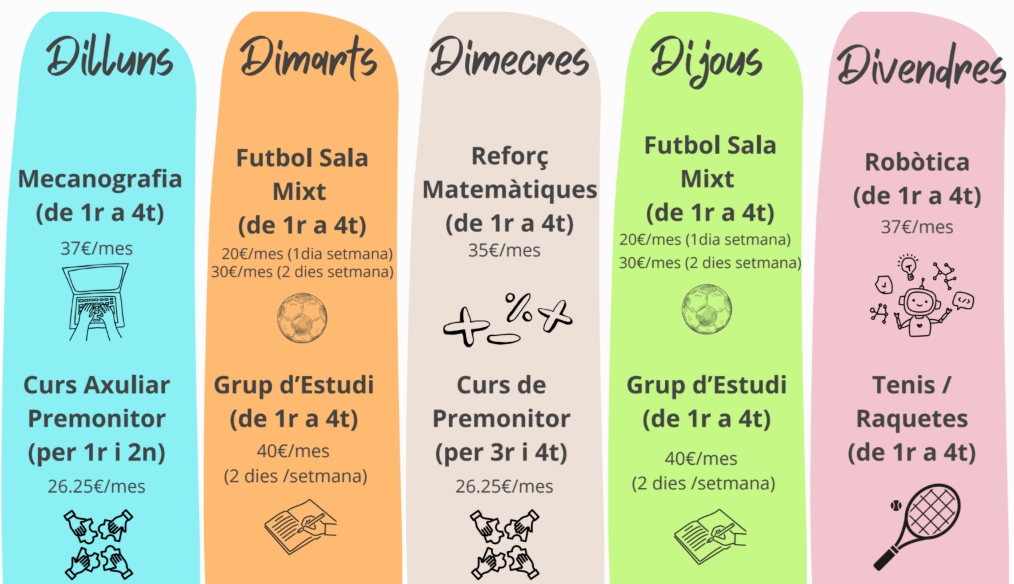 En cas de REBUTS IMPAGATS, l’alumne no podrà assistir a l’activitat extraescolar.