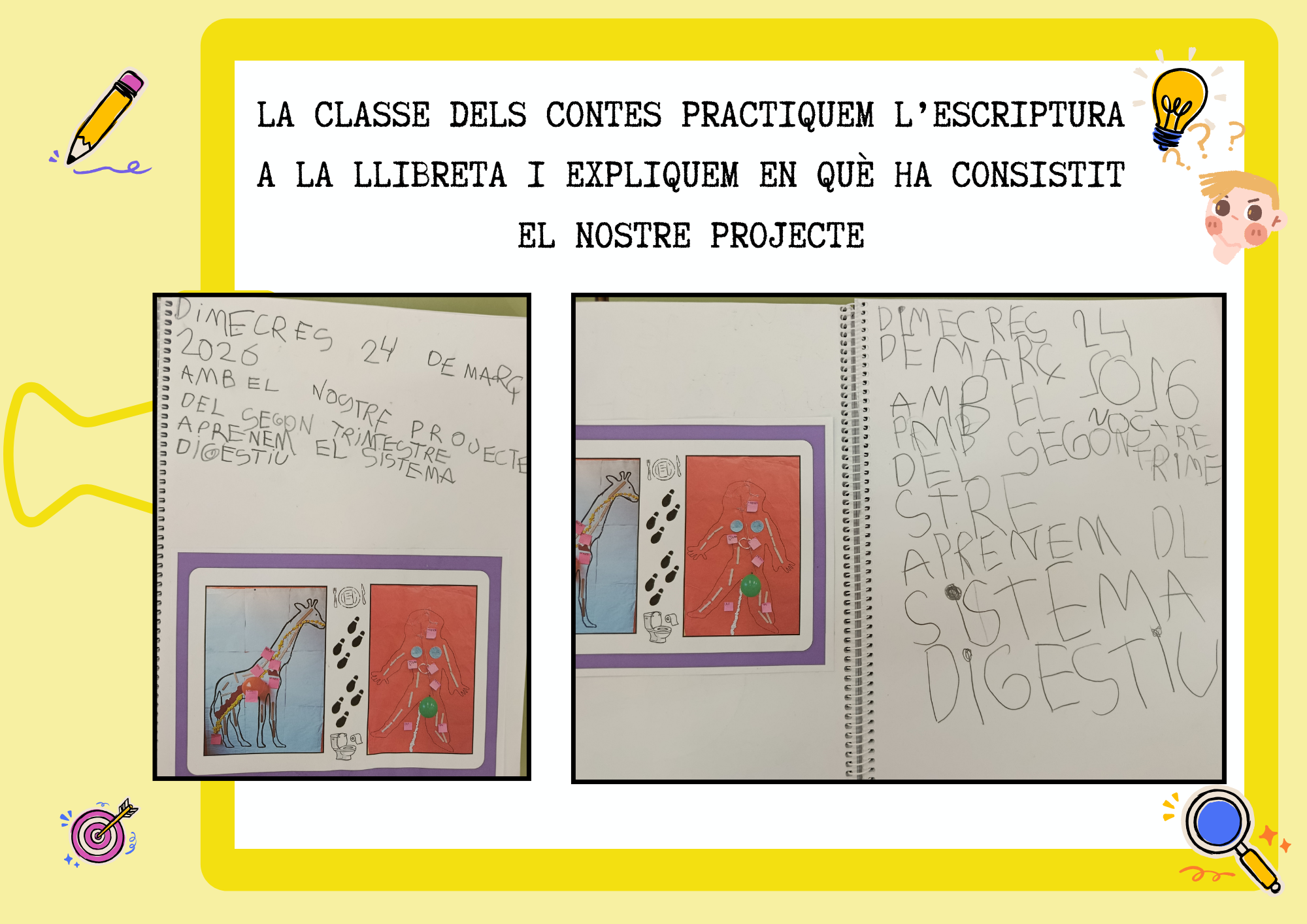 A la classe dels Contes practiquem l’escriptura a la llibreta explicant el que hem treballat al nostre projecte del segon trimestre.