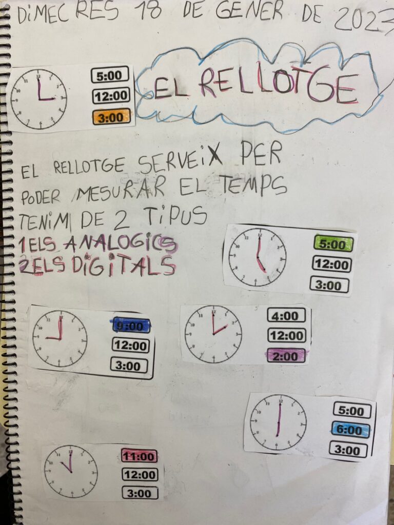 El Viver escriu gener: El sistema de les hores Irene Costa30/01/23 Bon dia famílies! La classe dels diamants estem treballant el rellotge i el sistema de les hores, us deixem un escrit del que hem anat descobrint fins ara 🙂