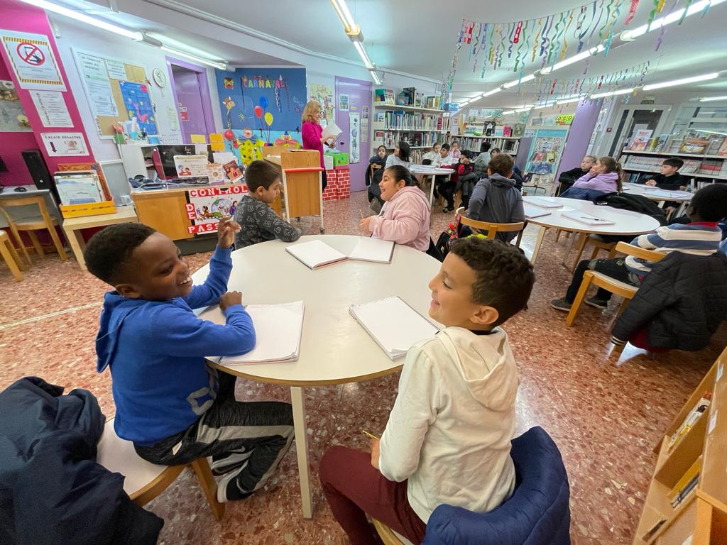 L’Almudena, l’encarregada de la gestió de la biblioteca del barri ens va explicar com podem trobar els llibres que ens interessin sobre un tema determinat, com estan col·locats a la biblioteca i com ens podem fer el carnet de biblioteca per poder emportar-nos els llibres a casa.