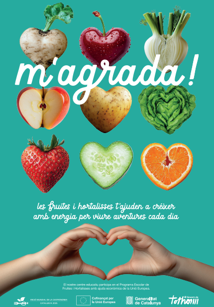 La nostra escola participa en el Programa de consum de fruita, hortalisses i llet a les escoles, una iniciativa promoguda per la Unió Europea i impulsada pels departaments d’Agricultura, Salut i Educació de la Generalitat de Catalunya.
