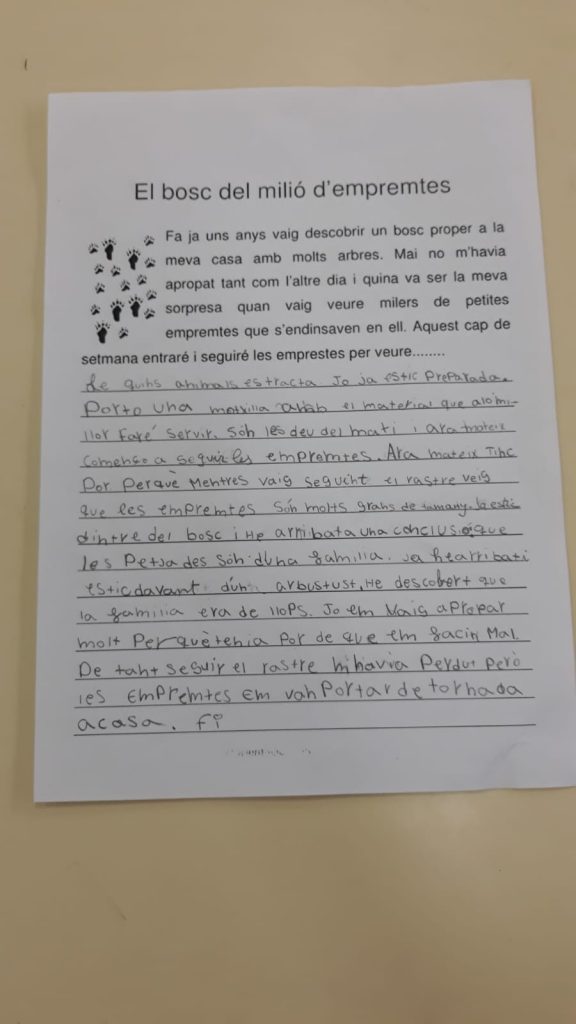 Els nens i nenes de 3r de la Classe dels Milionaris continuen la història del bosc del milió d’empremtes.