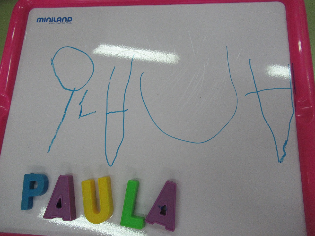 Els nens i les nenes de p3 ja comencen a escriure… hem fet el nostre nom amb guix en una cartolina negra!!!!