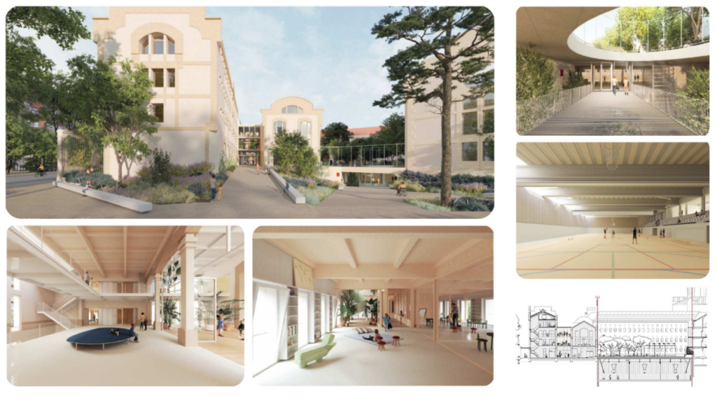 Ara per ara l’edifici escolar té cinc plantes, un gran espai exterior i un gimnàs.