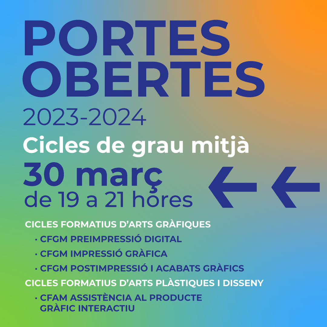 CICLES FORMATIUS DE GRAU MITJÀSessió presencial: Dijous 30 de març a les 19.00h. CICLES FORMATIUS D’ARTS GRÀFIQUESCICLES FORMATIUS D’ARTS PLÀSTIQUES I DISSENY |