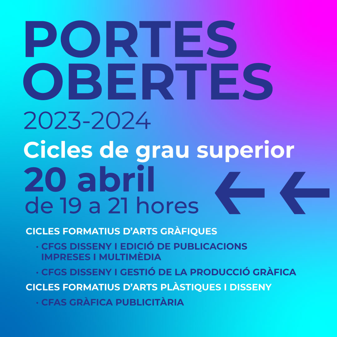 CICLES FORMATIUS DE GRAU SUPERIORSessió presencial: Dijous 20 d’abril a les 19.00h. CICLES FORMATIUS D’ARTS GRÀFIQUESCICLES FORMATIUS D’ARTS PLÀSTIQUES I DISSENY |