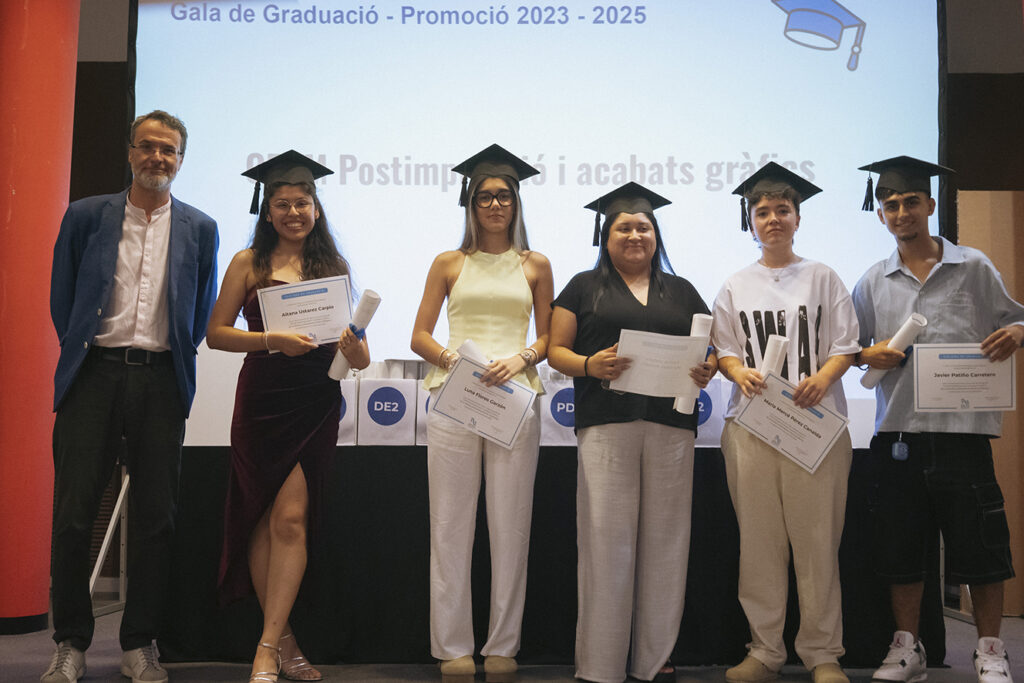La festa va començar amb la benvinguda de la directora del centre, que va felicitar l’alumnat per la seva trajectòria i va destacar l’esforç i compromís que han mostrat al llarg del camí. Tot seguit, els tutors i tutores van ser els encarregats de lliurar les orles i diplomes a cada grup. Va ser un moment molt especial, amb aplaudiments, somriures i alguna llàgrima d’emoció.