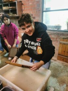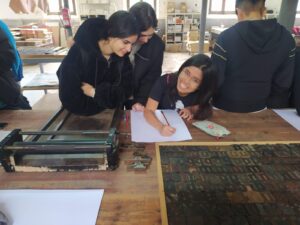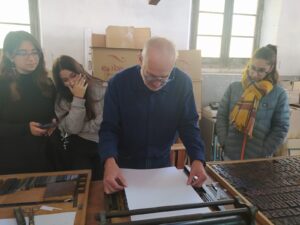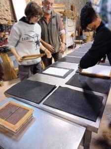Un curt espai per esmorzar, ens va portar a realitzar dos tallers, un de fabricació de paper i un d’impressió tipogràfica, que resultaren de grat de l’alumnat que van destacar pel seu al nivell de compromís i les ganes de participació.