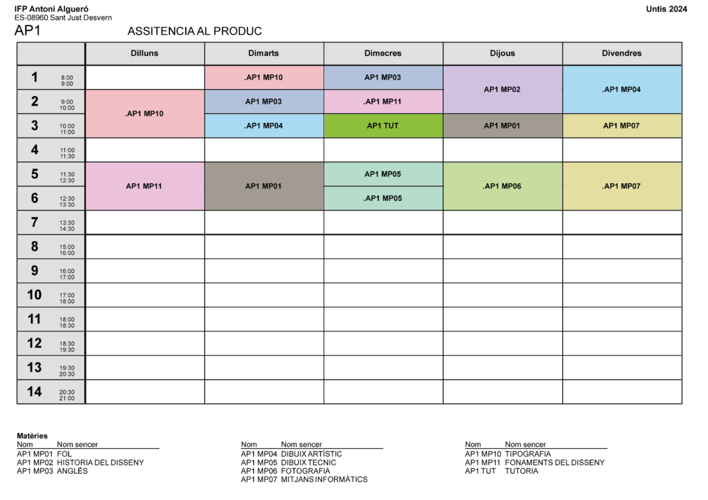 Horari CFAM Assistència la producte gràfic interactiu 1r curs (AP1)
