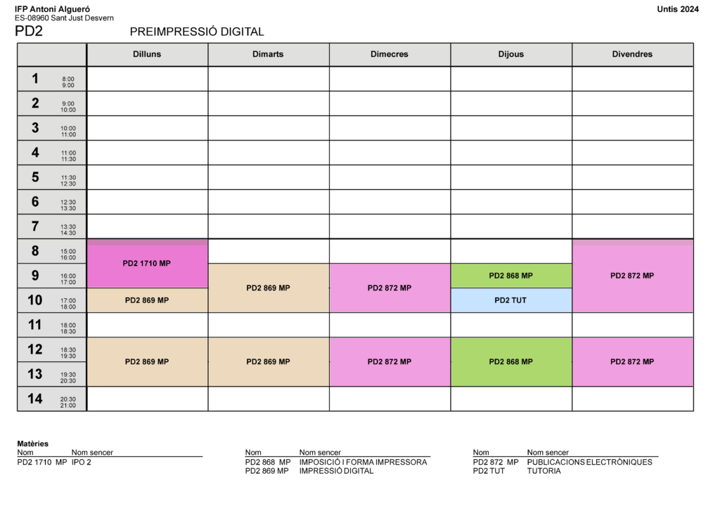 Calendari del curs