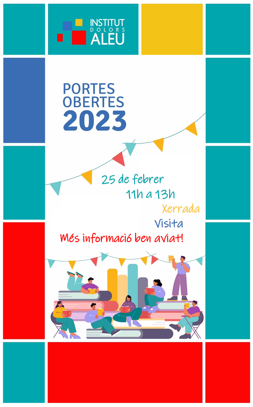 Ens fa molta il·lusió anunciar-vos la jornada de Portes Obertes de l’Institut que serà el proper 25 de febrer de les 11h a les 13h. A les 11h hi haurà una xerrada informativa i a continuació podreu visitar el centre. Aviat us en donarem més informació. Us hi esperem!
