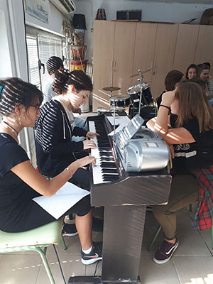 Us mostrem unes imatges de les titelles, d’una coreografia i d’un grup treballant per composar amb els instruments la melodia.