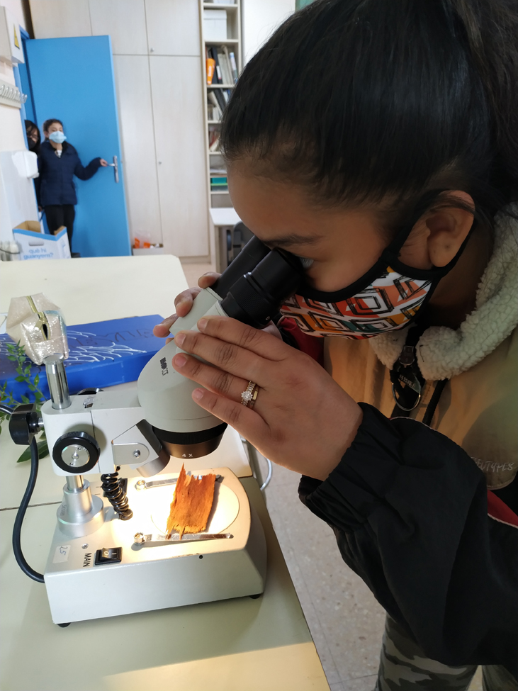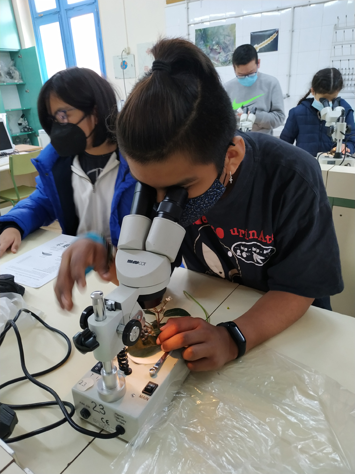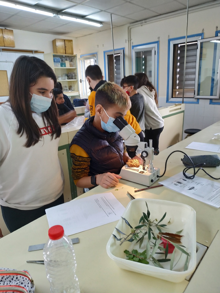 Els i les alumnes de 1r B van anar al laboratori de Ciències Naturals per observar diferents plantes a la lupa. A més de l’observació de fruits, flors, fulles i escorça d’arbres i matolls de l’entorn proper (Parc Guinardó), aquesta activitat consistia a poder distingir les parts més importants de les flors (òrgans reproductors) i classificar les fulles seguint una clau dicotòmica.