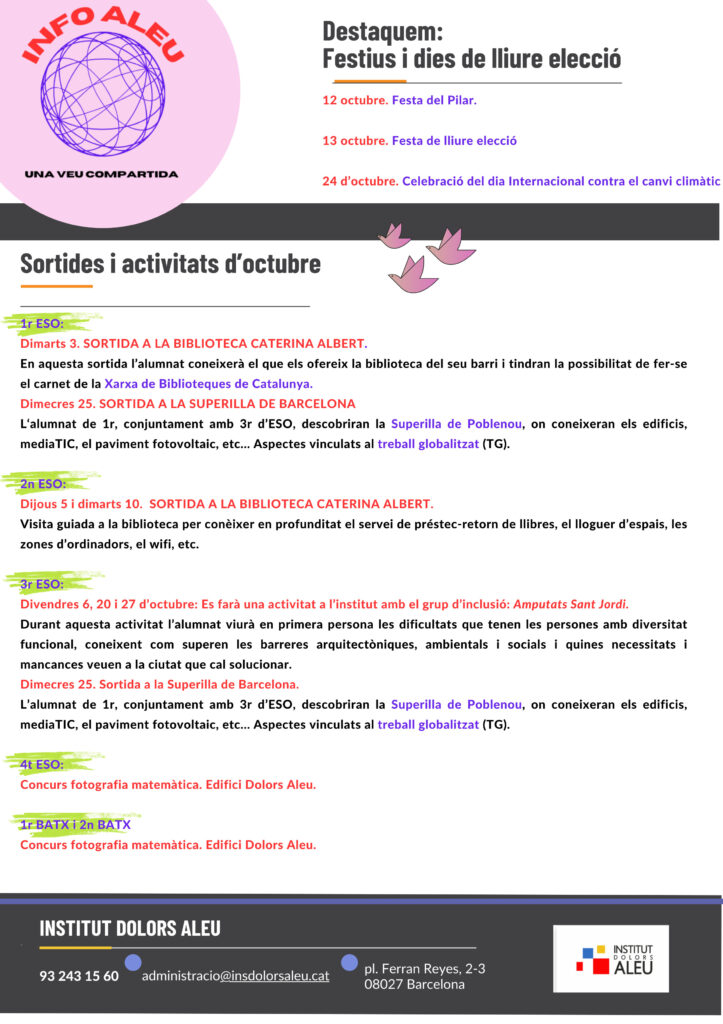 Aquí teniu el butlletí corresponent al més d’octubre de 2023. A partir d’ara anirem publicant el butlletí mensualment aquí a la pàgina web. També els rebreu a través d’ENSE.