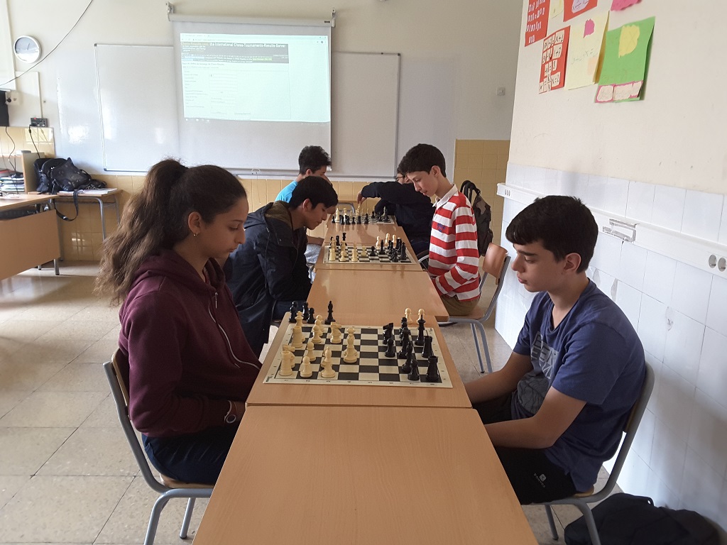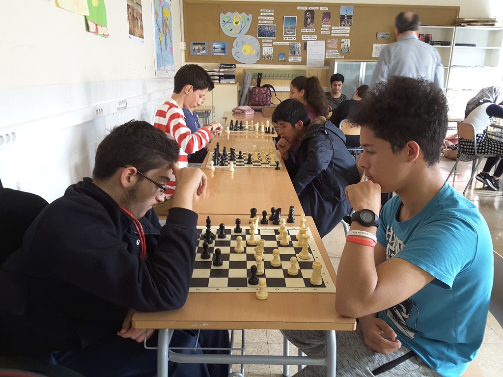 Aquest any hem iniciat una matèria optativa que ha portat els escacs en horari lectiu al nostre institut. Fa molt temps que volíem incorporar els escacs al nostre currículum i gràcies a la col·laboració de l’Escola d’escacs de Barcelona ho hem aconseguit. Hem comptat amb un professor de luxe, l’Abel Segura, president de la citada escola, que de forma totalment desinteressada ha treballat amb nosaltres durant un quadrimestre. Ens ha transmès infinitat de coneixements, no solament a nivell tàctic sinó també sobre la nostra actitud davant el joc i sobre com pensar i en què centrar la nostra atenció.