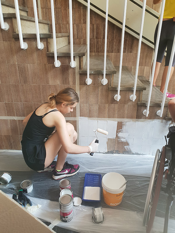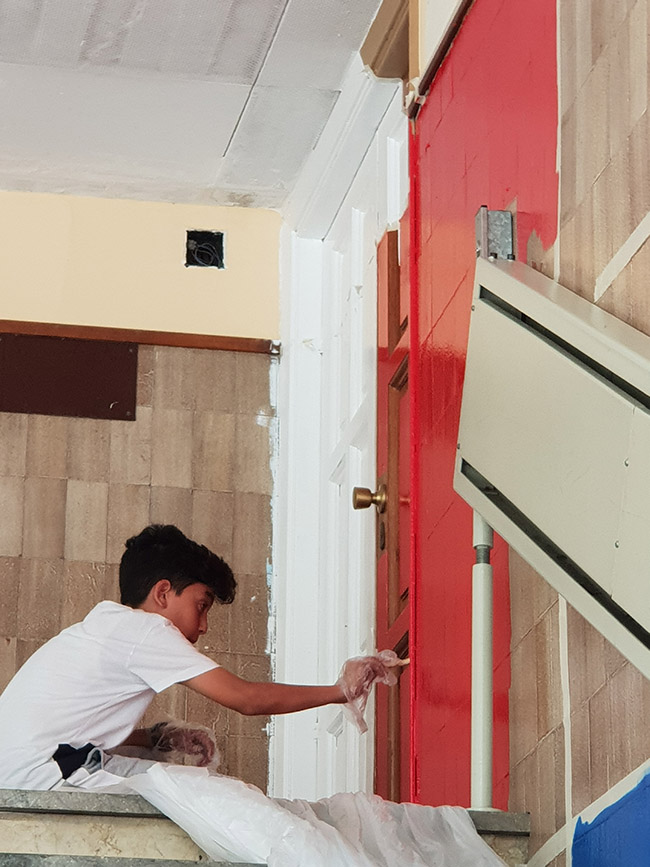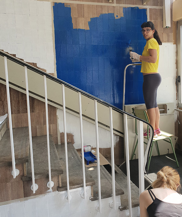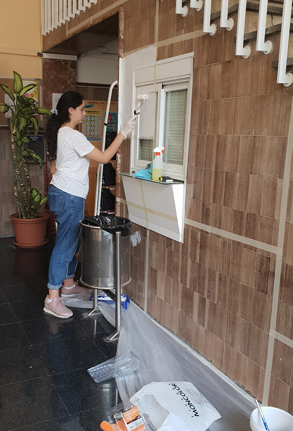 Primer dia: Avui ens hem trobat els primers voluntaris per renovar la pintura de les parets del vestíbul.