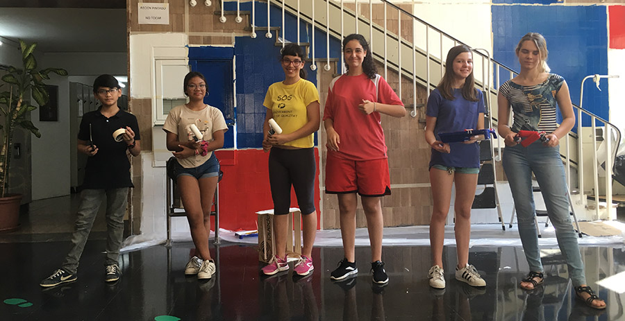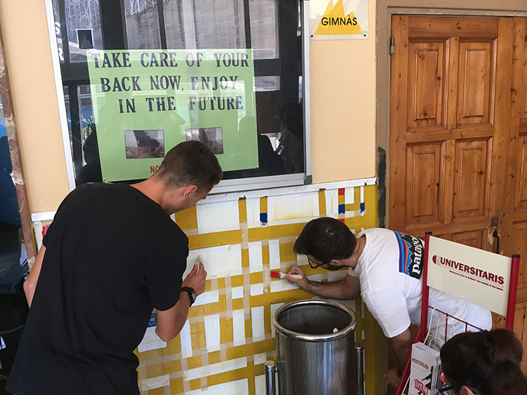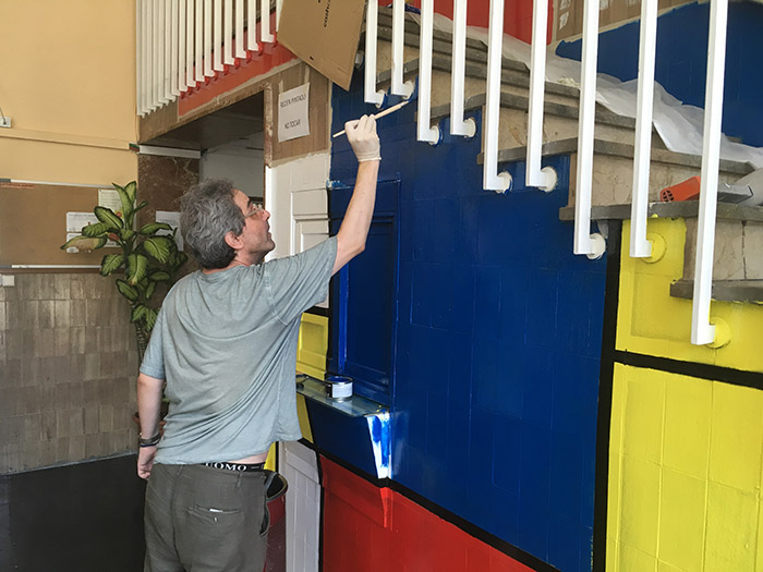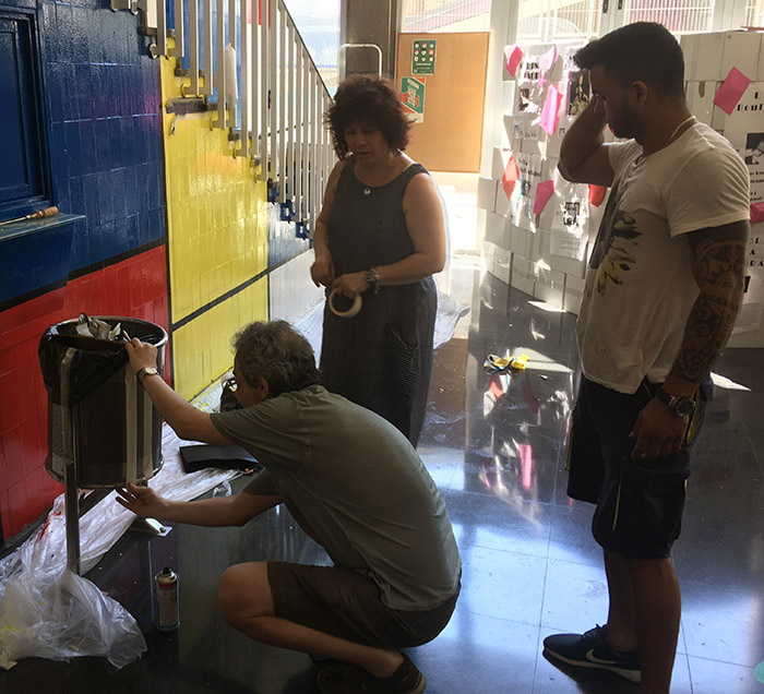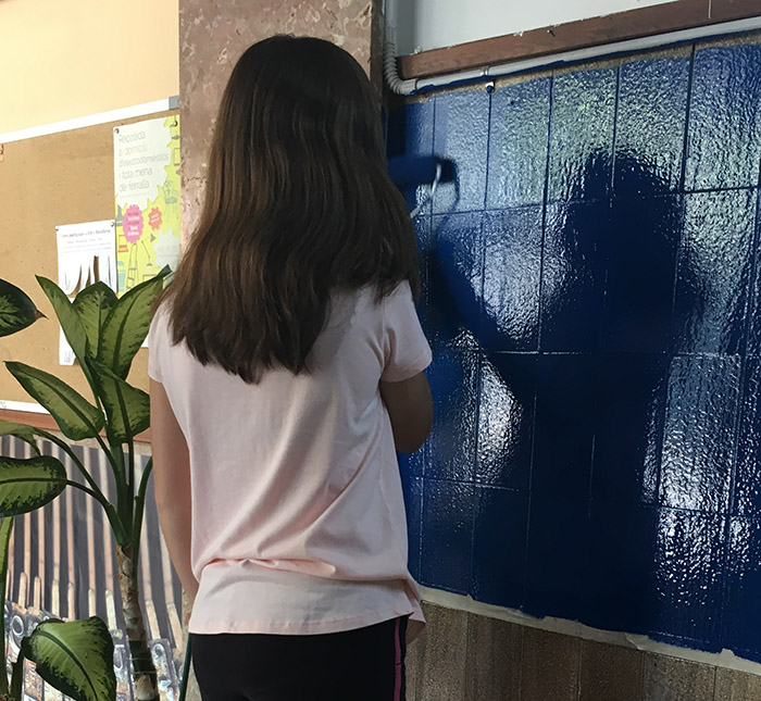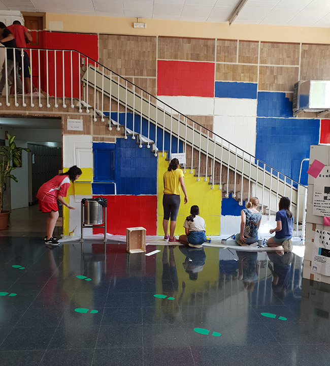 Vine a l’institut i experimenta el gust de ser un artista col·laborant em la pintura del vestíbul.