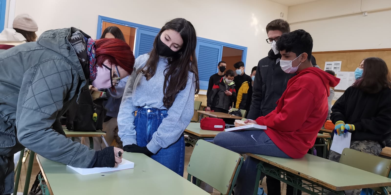 Els i les alumnes han aprofitat per fer-li preguntes sobre el llibre Cor de cactus i altres formes d’estimar, inclús han animat a l’escriptora a escriure la continuació del llibre, amb idees pel guió. Al final de l’acte l’autora ha aprofitat per signar llibres als estudiants.