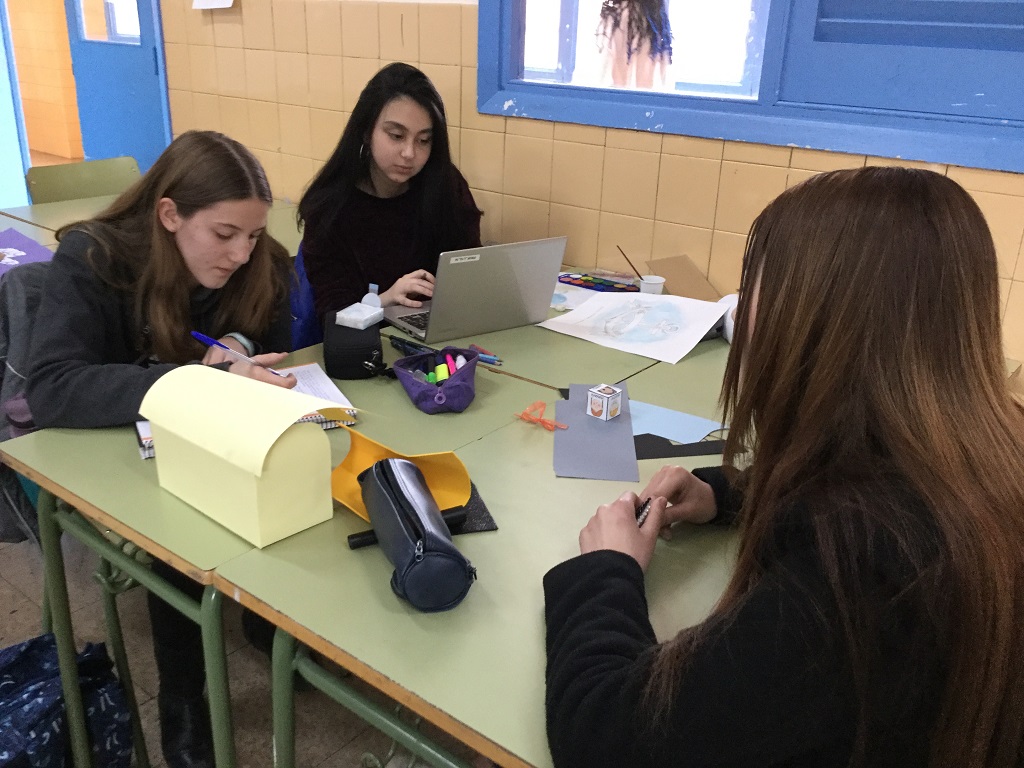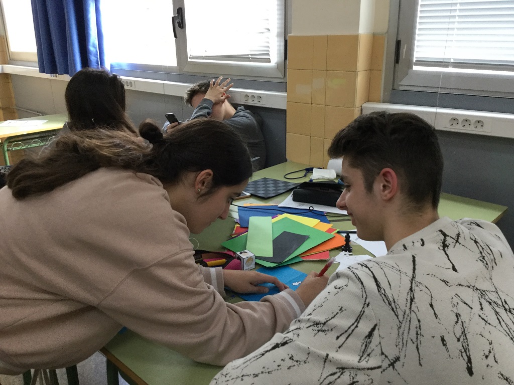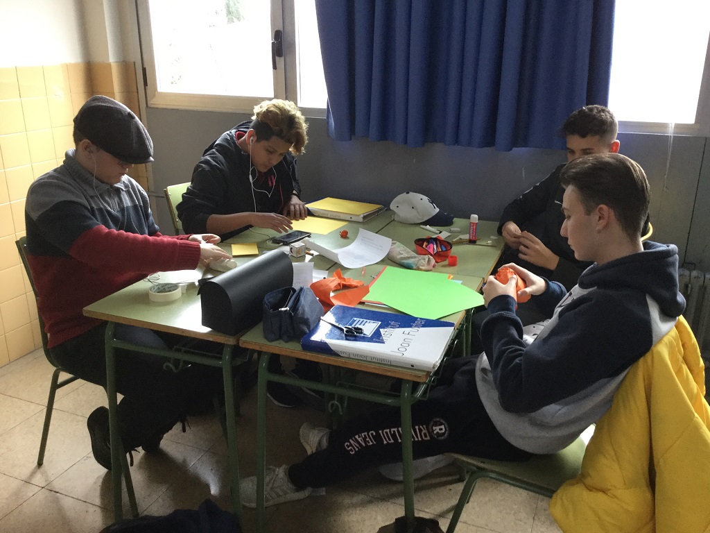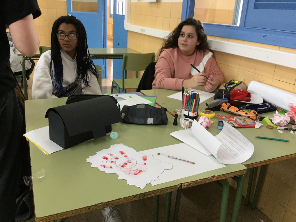 Les tres classes ens vam dividir en grups de quatre i ens vam repartir per les aules. A cada aula, cada grup tenia un “cofre” d’un color diferent i a dins hi havia una sèrie d’objectes i instruccions. Després vam saber que cada color indicava una temàtica (amor, terror, ciència-ficció, aventura o policíaca). Per fer l’activitat ens van demanar que portéssim material per fer manualitats, ganes de treballar i molta imaginació i creativitat. I és que havíem de crear una història, un conte.