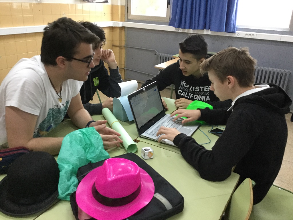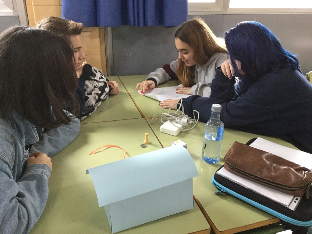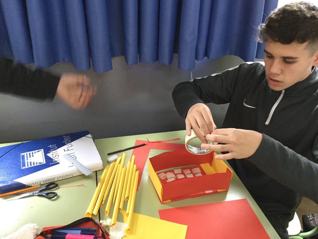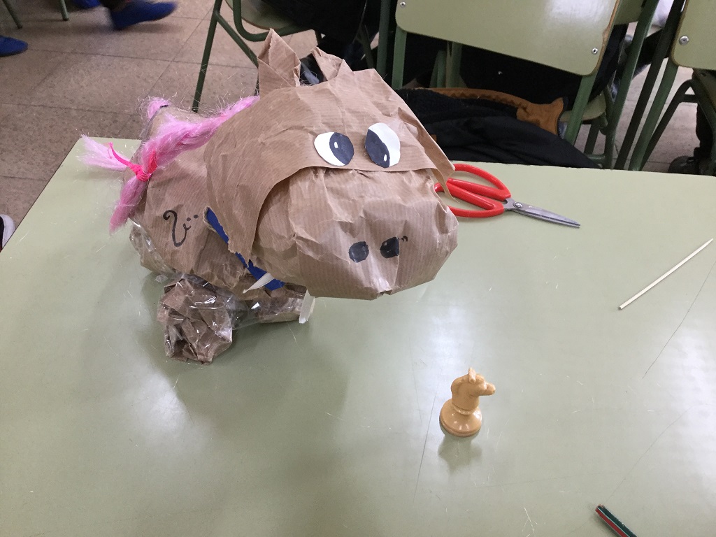 Les tres classes ens vam dividir en grups de quatre i ens vam repartir per les aules. A cada aula, cada grup tenia un “cofre” d’un color diferent i a dins hi havia una sèrie d’objectes i instruccions. Després vam saber que cada color indicava una temàtica (amor, terror, ciència-ficció, aventura o policíaca). Per fer l’activitat ens van demanar que portéssim material per fer manualitats, ganes de treballar i molta imaginació i creativitat. I és que havíem de crear una història, un conte.