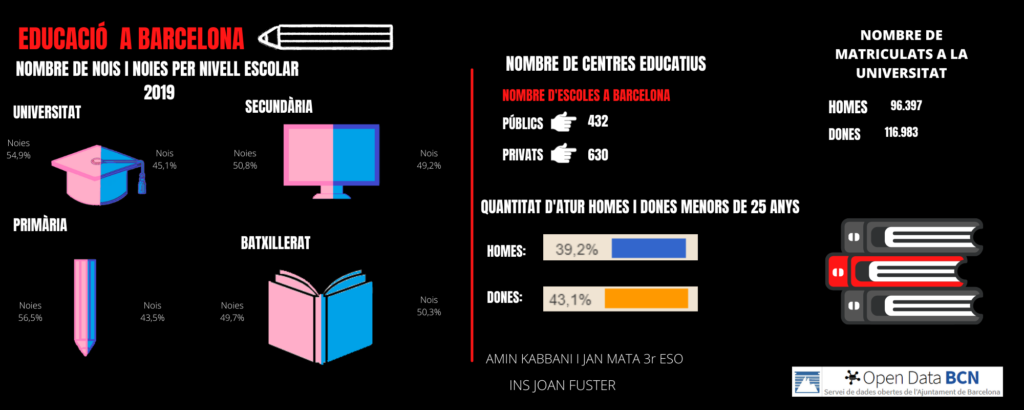 Els alumnes de 3r d’ESO, en el marc del Treball Globalitzat per Projectes hem treballat el tema de les dades obertes que ens ofereix l’Ajuntament de Barcelona en el seu portal públic: https://opendata-ajuntament.barcelona.cat/