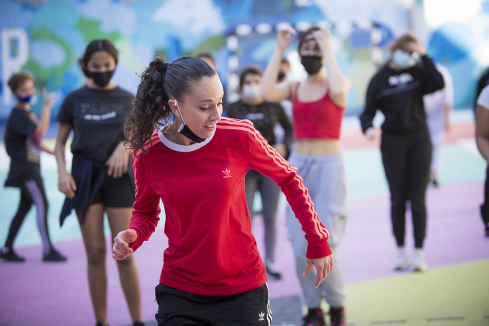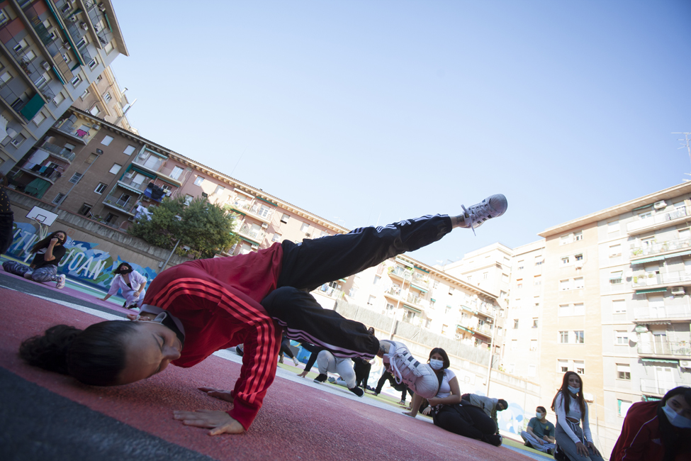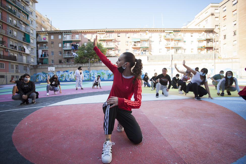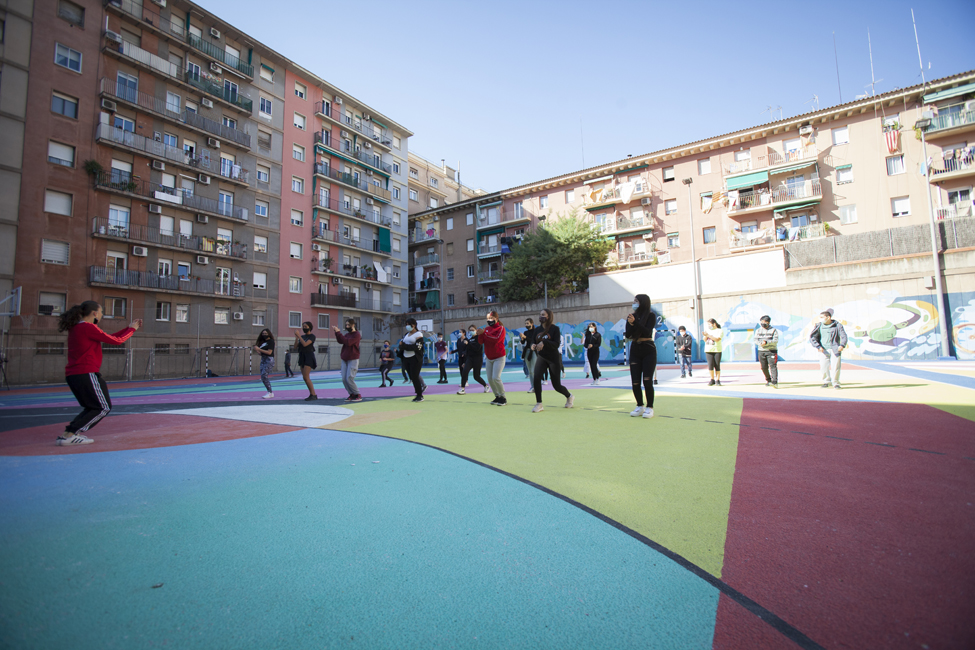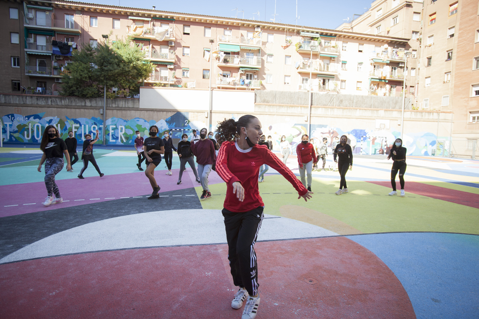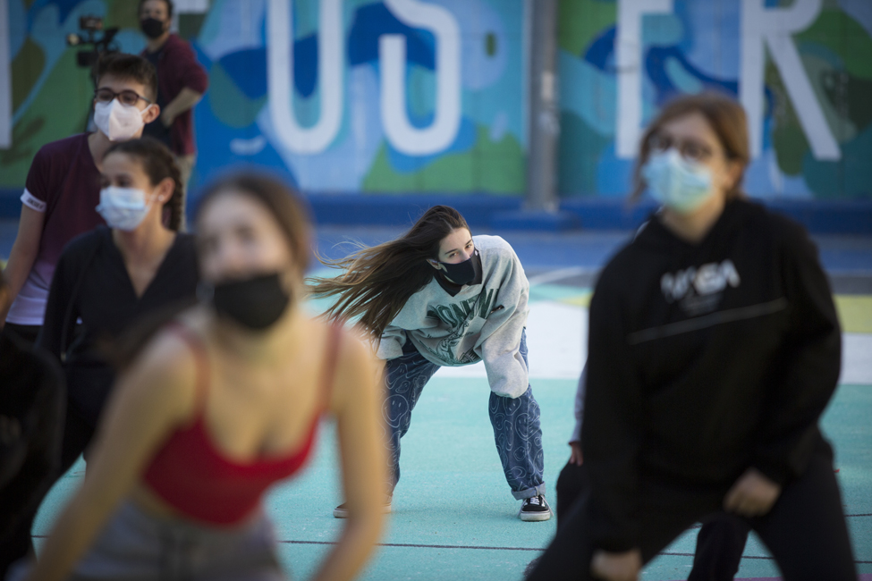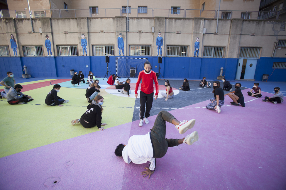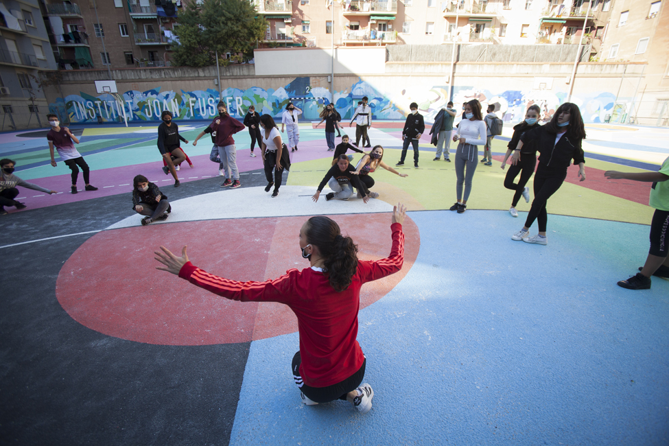 Ara sí! Queda inaugurat oficialment el nou aspecte de les pistes de l’Institut Joan Fuster. L’acte ha comptat amb la participació d’Izaskun Ortega, Miss Izzy, que ha impartit un taller de dansa urbana a alumnes de l’institut.