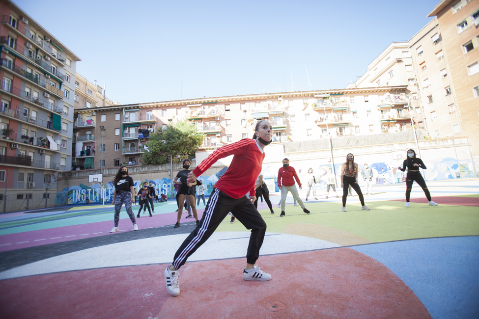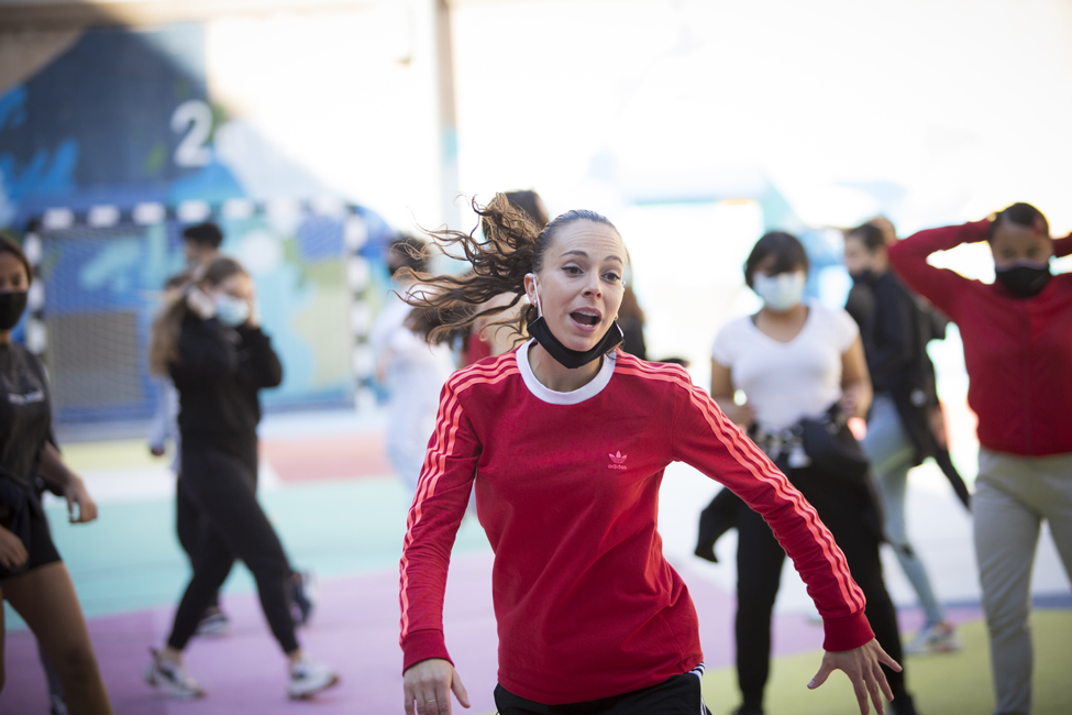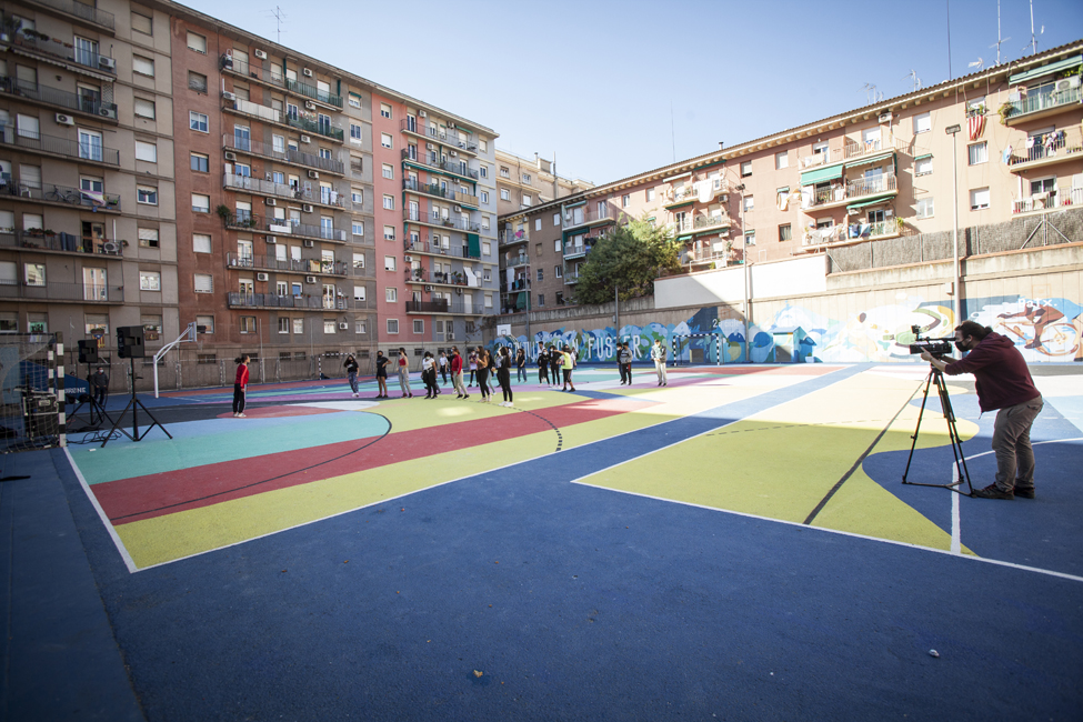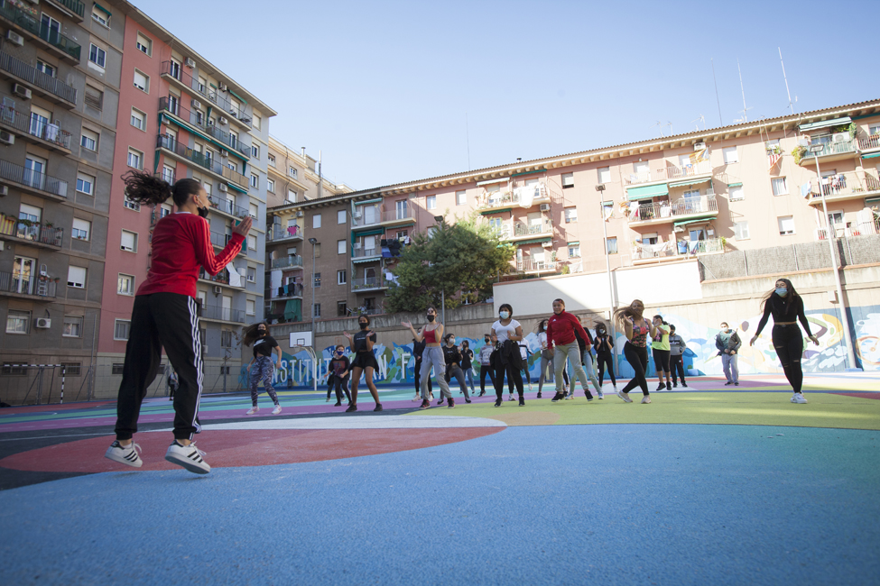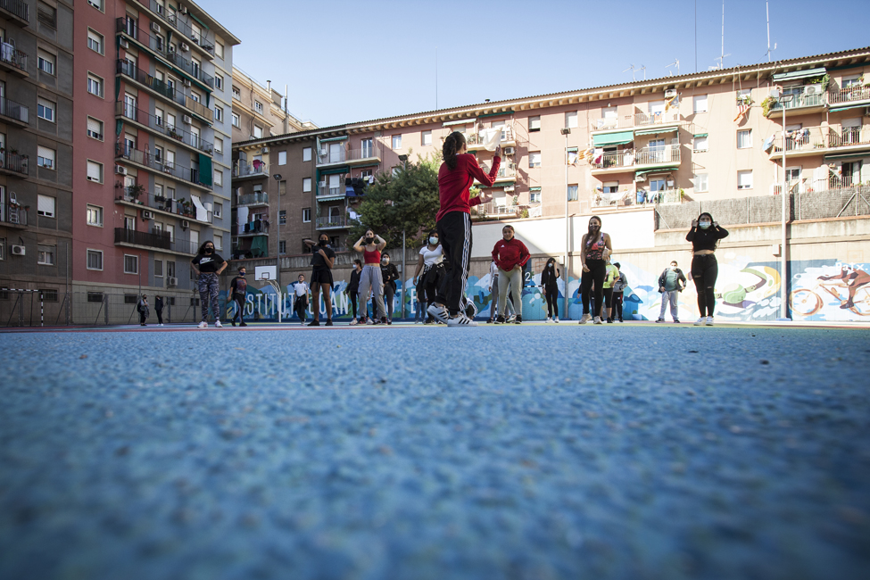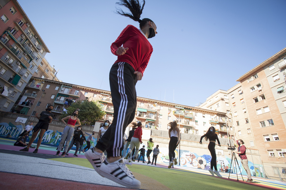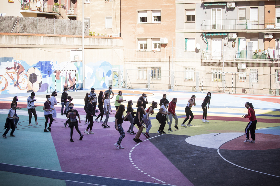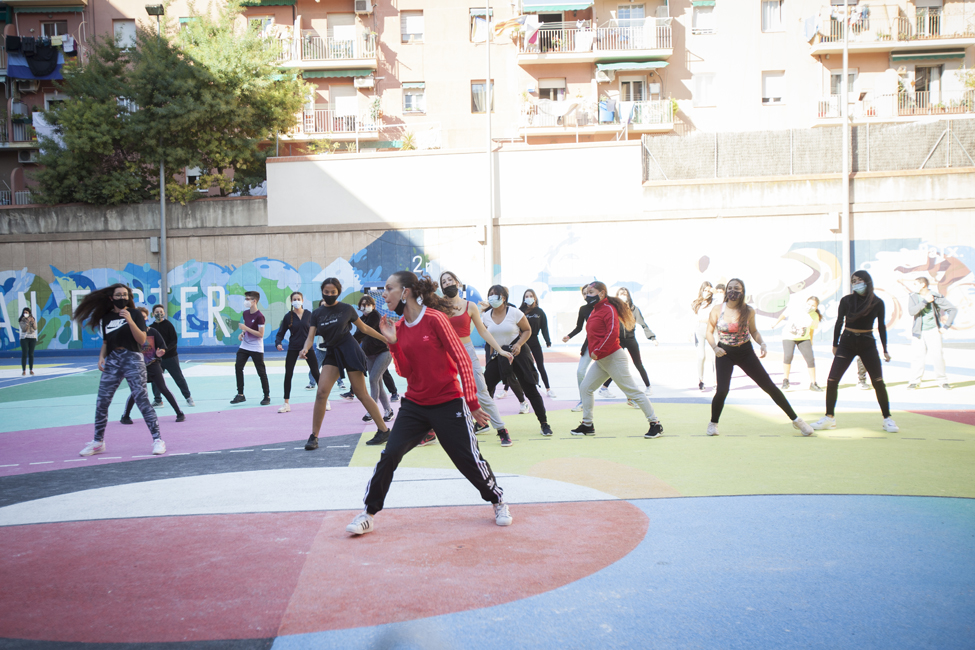 Ara sí! Queda inaugurat oficialment el nou aspecte de les pistes de l’Institut Joan Fuster. L’acte ha comptat amb la participació d’Izaskun Ortega, Miss Izzy, que ha impartit un taller de dansa urbana a alumnes de l’institut.