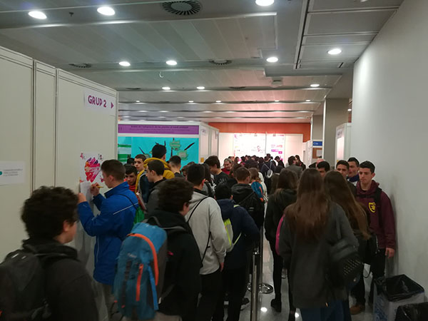La XIX Exporecerca Jove es celebra a Barcelona del 22 al 24 de març. Sebastià Vilà i Magí Romanyà, de 2n de batxillerat, defensen el seu treball de recerca “Preferències alimentàries de les formigues Tetramorium Caespitum”.