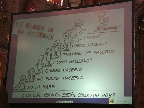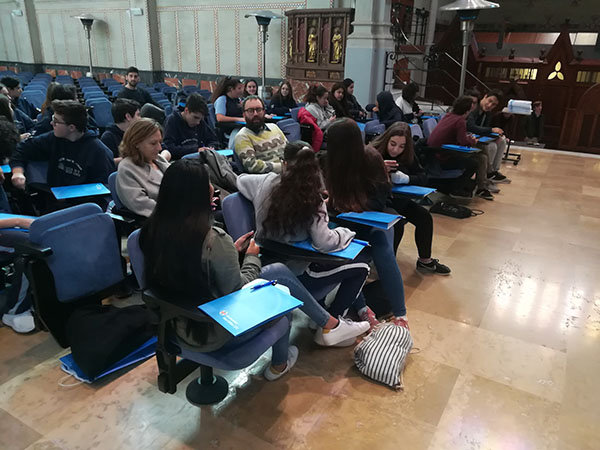 El divendres al matí hem anat amb els alumnes de 1r de batxillerat per visitar la Fira i després hem assitit a un “taller d’entrenament a l’optimisme” a la Universitat Abat Oliba CEU.