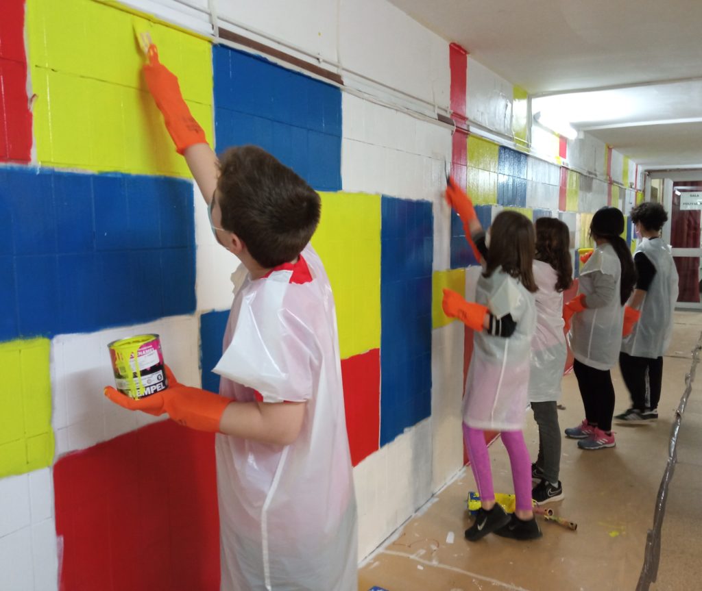 Mural seguint l’estil i la composició del pintor Piet Mondrian