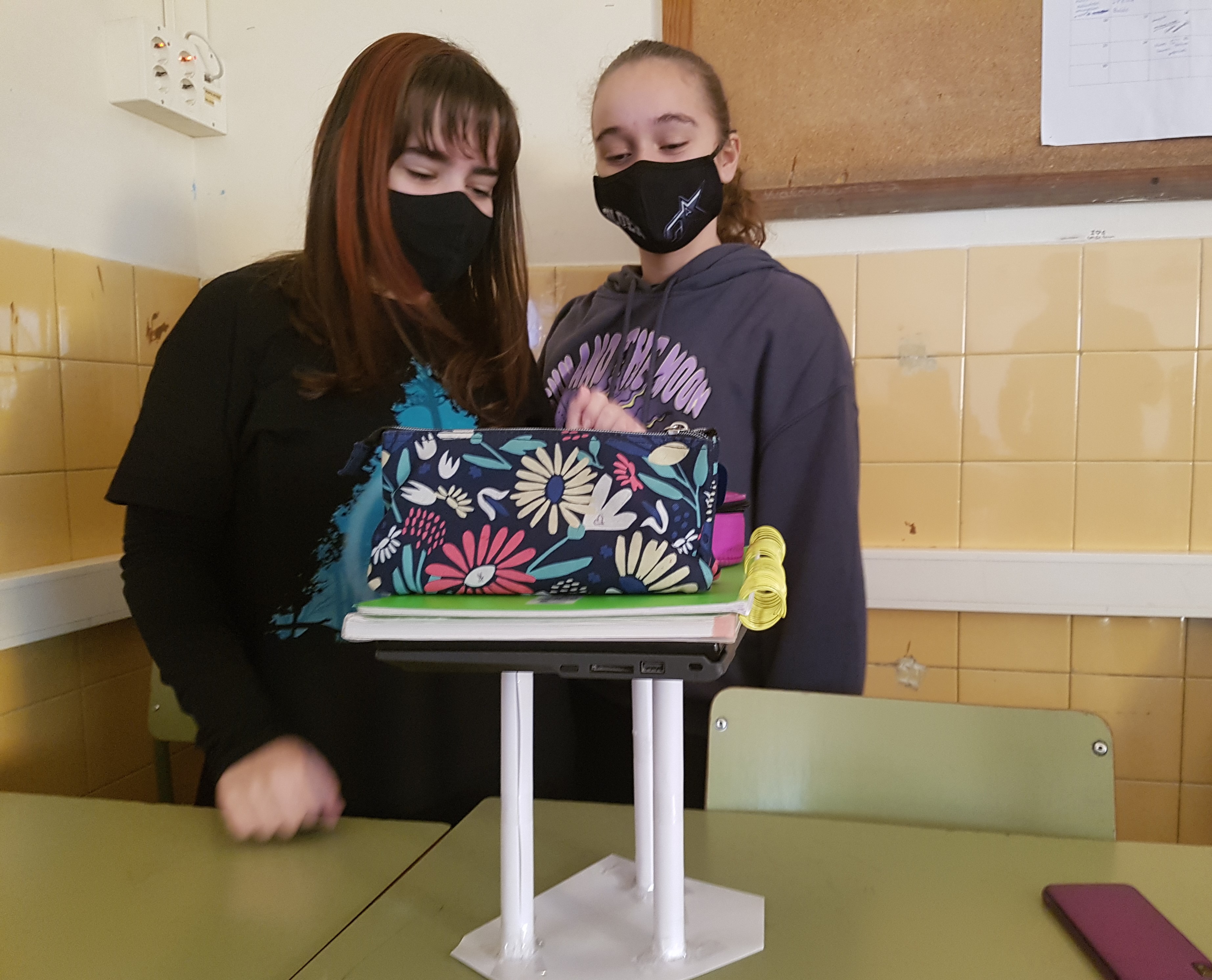 L’activitat que presentem en aquestes fotografies és una dinàmica que vam fer servir per presentar el nou projecte. Cada grup disposava de 5 fulls en blanc i d’un rotlle de cel·lo per a fer una construcció que s’aixequés un pam de la taula i que pogués suportar el pes del seu ordinador portàtil.
