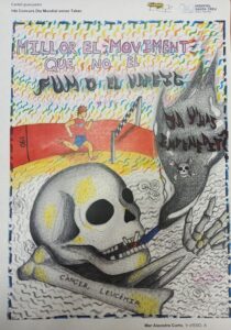 Mar Alavedra Curto, de 1r d’ESO, guanya amb el seu dibuix el 14è concurs de cartells del Dia mundial sense tabac. Aquesta és una de les activitats que es realitzen dintre de la Setmana Sense Fum, amb l’objectiu de sensibilitzar la ciutadania sobre els beneficis de respirar un ambient lliure de fum, prevenir el consum de tabac entre els joves i promoure l’abandonament de l’hàbit entre les persones fumadores.
