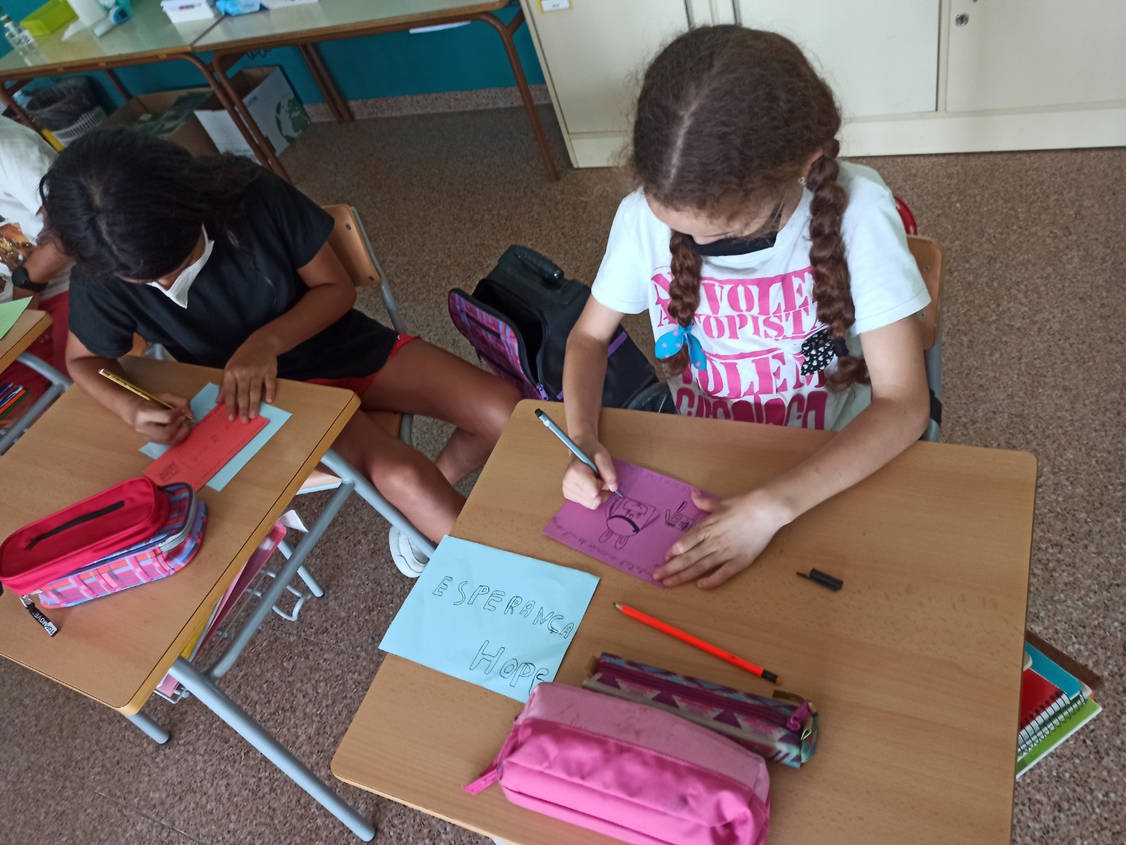 El dia 26 de Setembre va ser el Dia Europeu de les Llengües i durant aquests dies hem estat elaborant postals on hem escrit la paraula esperança en diferents idiomes de tot el continent. Una activitat que vincula amb el treball de les emocions i la planificació d’activitats #dinsteu que es realitzaran de forma transversal aquest curs. Viatjarem amb les nostres postals i compartirem emocions amb Portugal, Eslovàquia, Turquia, Grècia, Itàlia, Finlàndia, Romania, Polònia, Anglaterra, República Txeca, Irlanda del Nord i França.