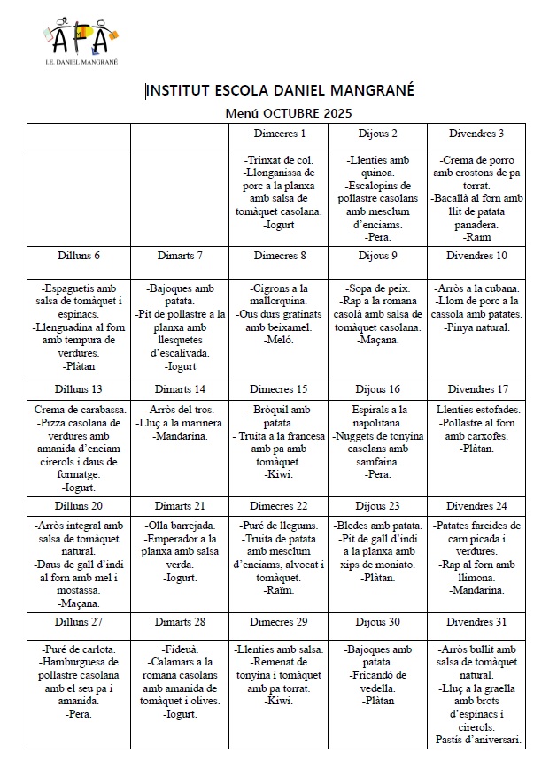 Menú octubre