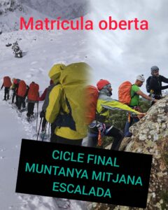 Trobareu tota la informació sobre la inscripció a l’apartat de Secretaria i sobre els estudis als apartats: EsquÃ, Muntanya mitjana i Escalada.