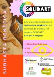 Aquest divendres es donarà per acabat el projecte SolidArt i ens hi conviden a anar-hi i participar en la subhasta a més de gaudir de les obres artístiques creades pels alumnes i col·laborar en una bonica iniciativa. Us hi esperen amb molta il·lusió!