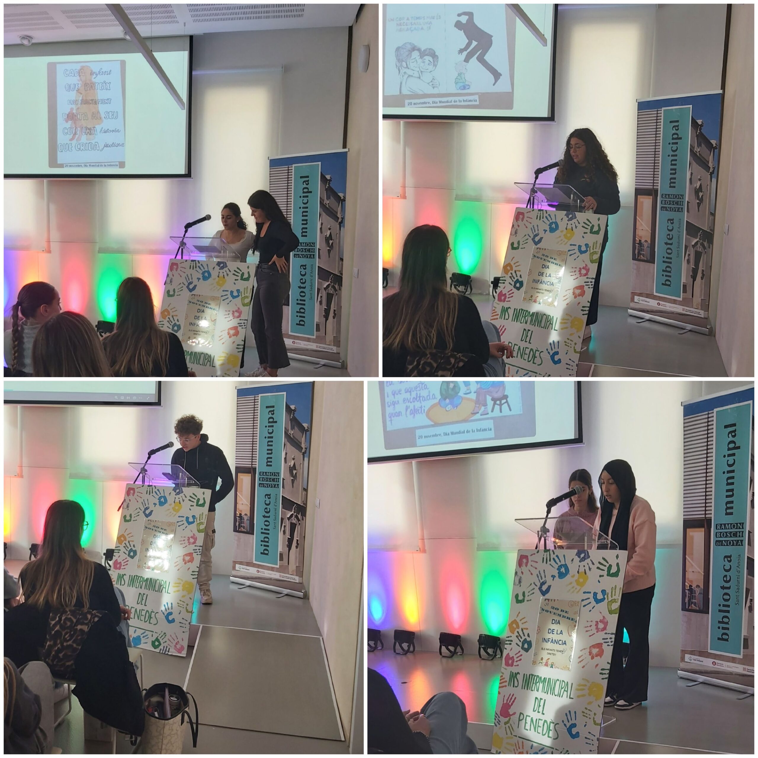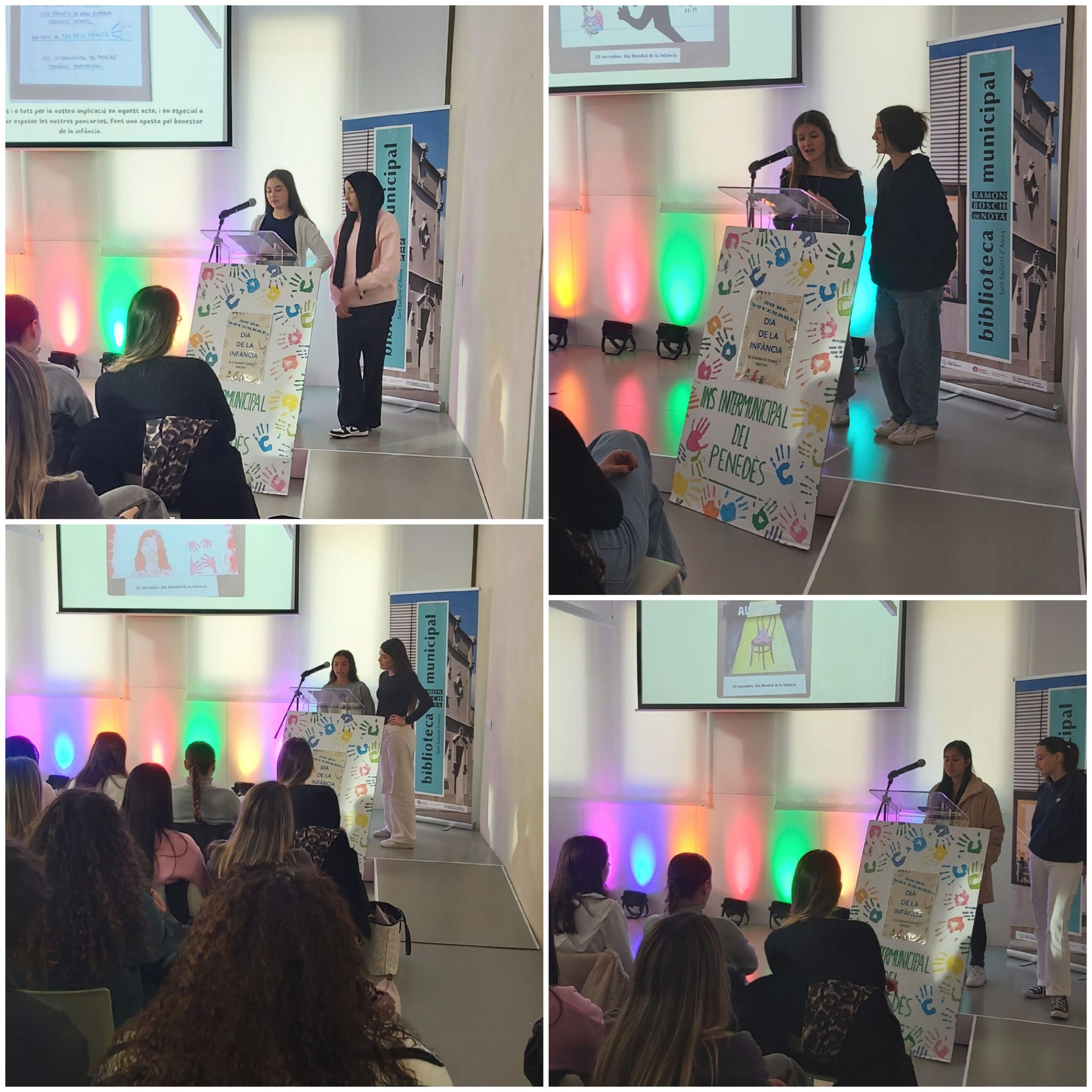 Des dels cursos del CFGS d’Educació Infantil, l’Ínter ha volgut donar valor a aquesta jornada portant a terme diferents activitats, creant cartells reivindicatius sobre els Drets dels infants i els diferents tipus de maltractament que estan exposats a la sala infantil de la Biblioteca de Sant Sadurní i al Centre Vilarnau.